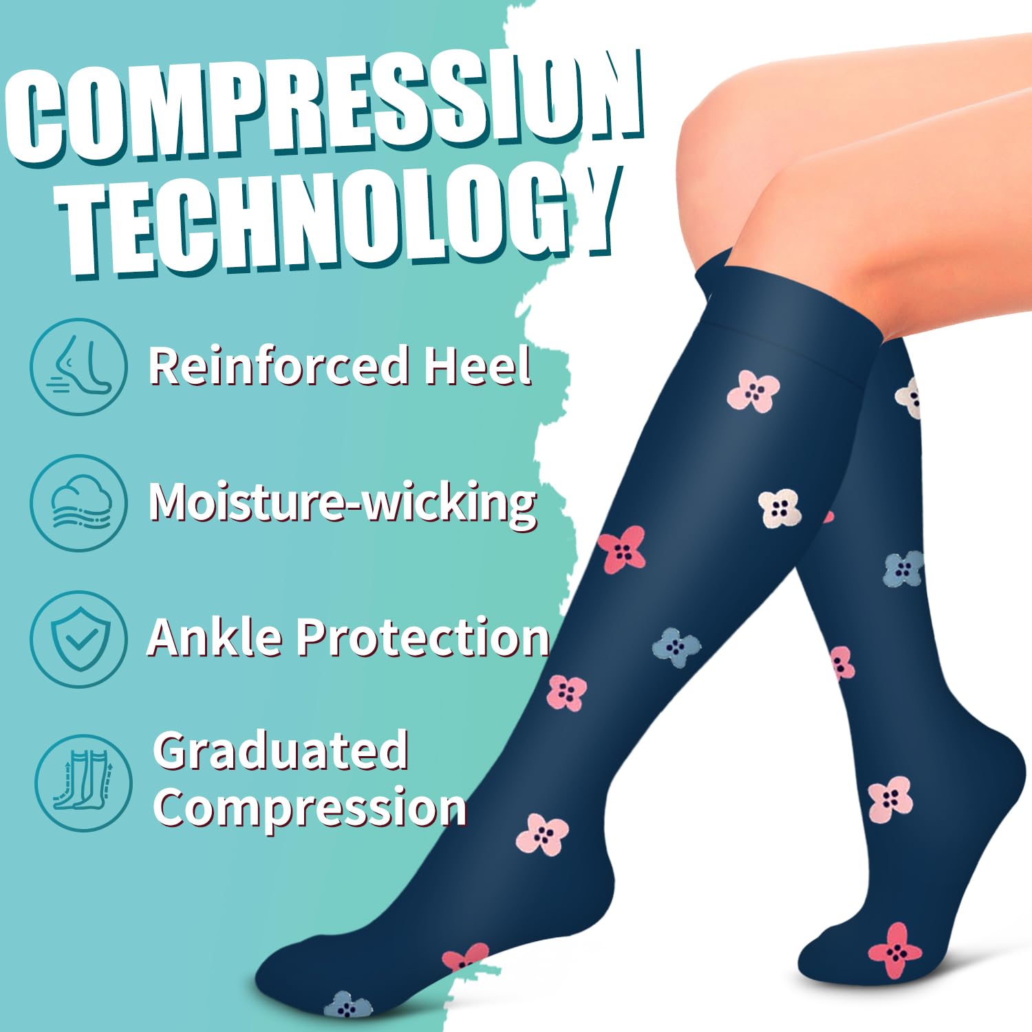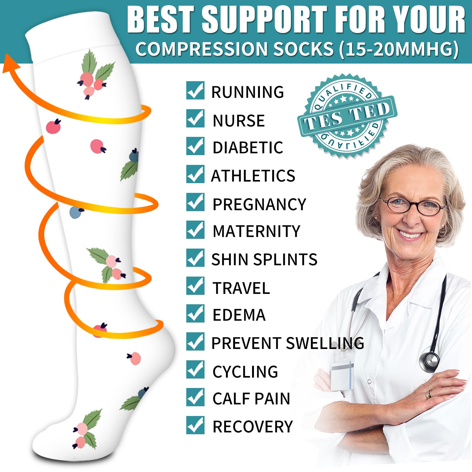 AMAZING EFFICACY-With a unique compression level that isn't too loose or too tight,it means you can wear our compression socks for women all day long comfortably.As they gently constrict the tissues and oxygenate the blood,they move waste fluids out,promoting ample circulation.Remove stress and stimulate every cell,reduce fatigue,soreness,cramping and prevent Varicose veins at the same time Ensure the healthy functioning of your circulatory system.Keep your legs feel fresher and more energized.