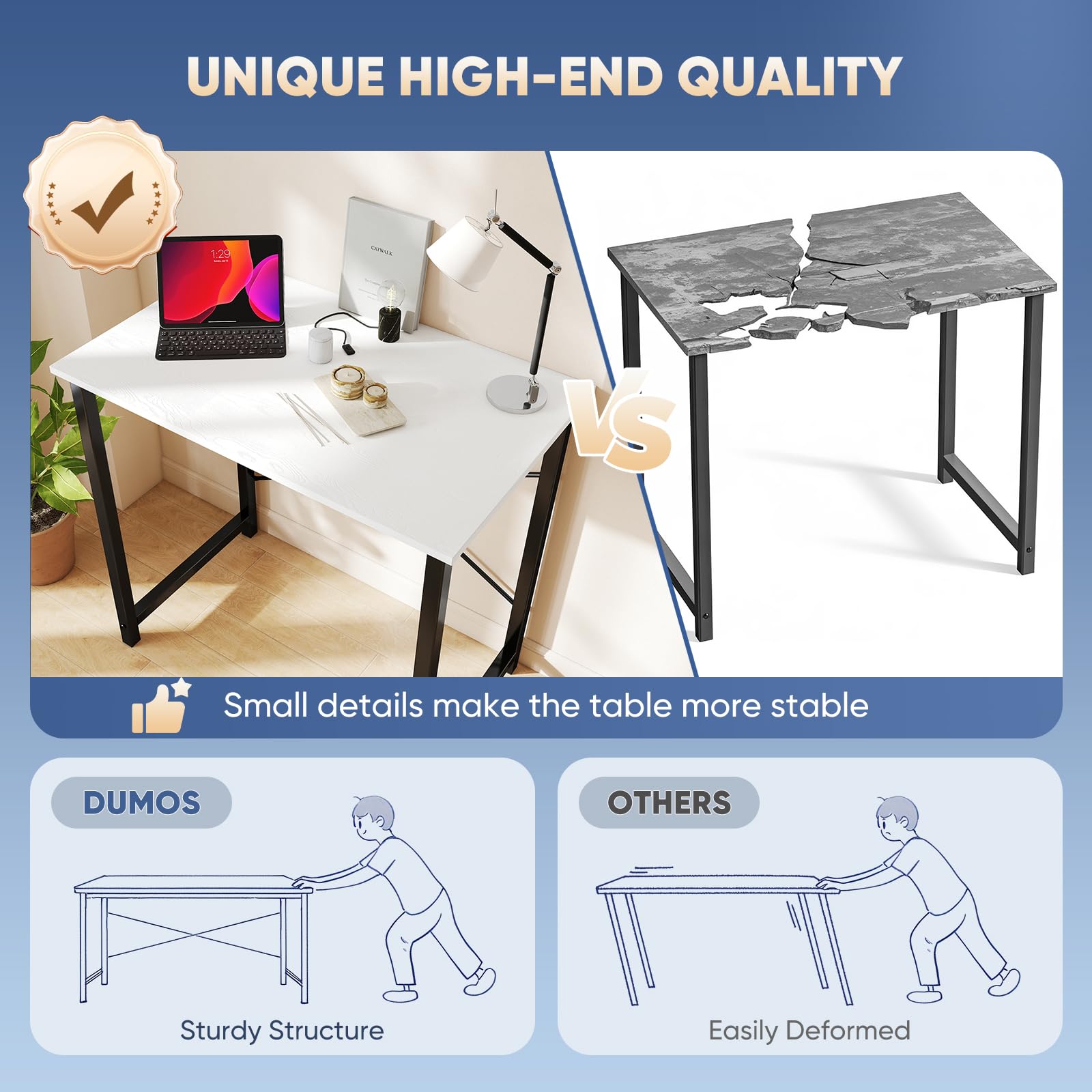 【X-Shaped Reinforcement Structure】Unlike flimsy tables, DUMOS uses a smart X-brace design right in the center. This stops annoying wobbling and keeps your table perfectly flat for years.