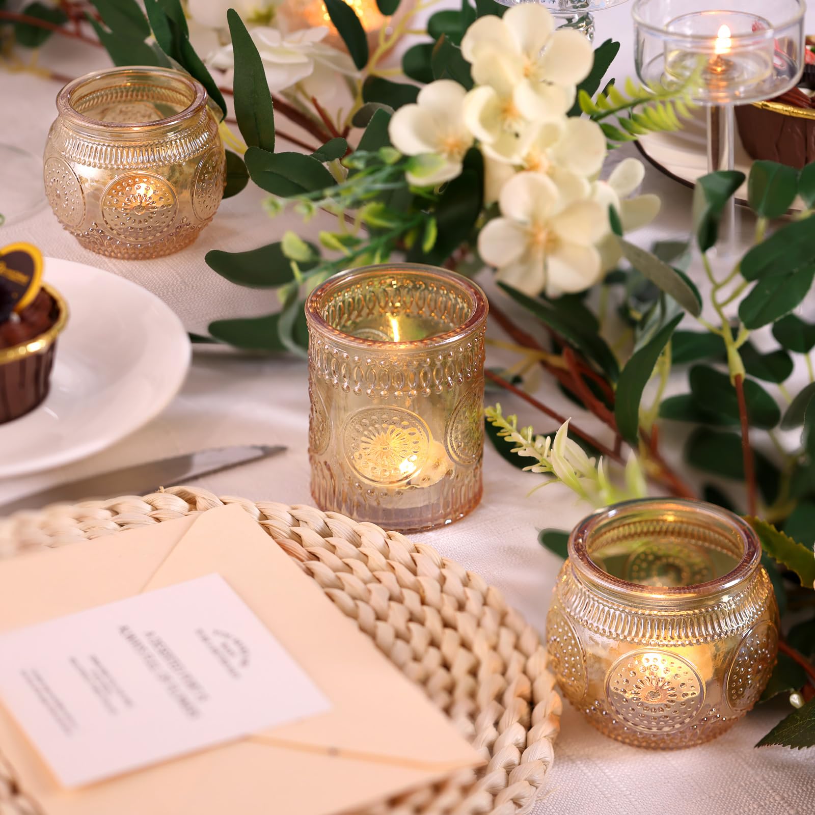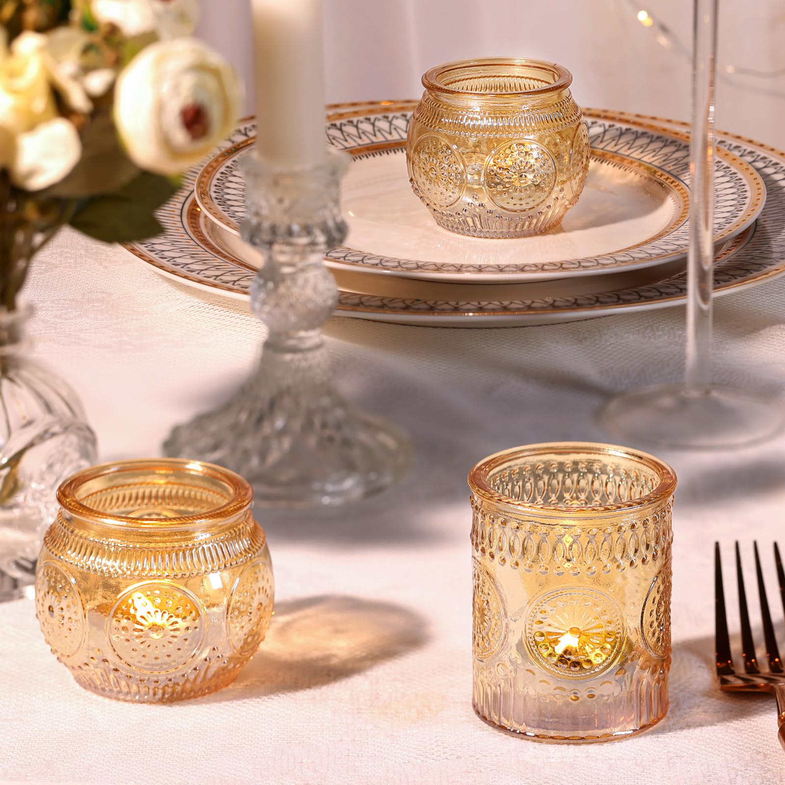 ❤️❤️[ Vintage Sunflower Embossed Style ]❤️❤️: This is the spark collision of retro and simple fashion. The combination of embossing technology and glass makes the votives more nostalgic and textured. At the same time, we chose the sunflower element, which is very cute and exquisite on the basis of vintage. Maybe you want a special and unforgettable party, DARJEN's nice design and well-made tea lights candle holder will be a necessity for your party centerpieces.