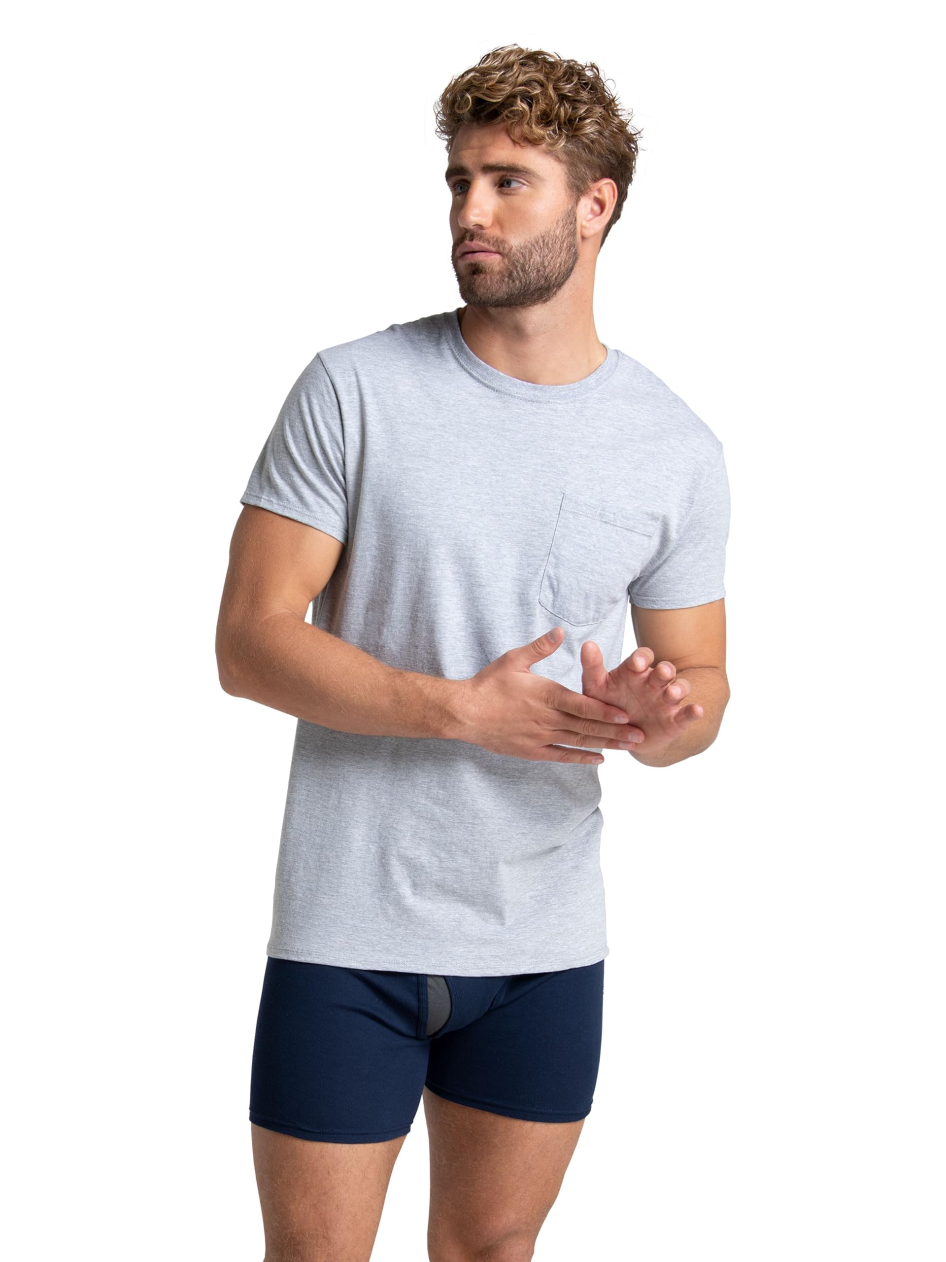 Description Our Men's Pocket T-shirts are a casual wardrobe staple that you are going to love to live in. Featuring a collar, super soft cotton and reinforced pocket, the Fruit of the Loom® men's Pocket T-shirts are designed for comfort and made to last. Each shirt has long lasting construction and quality that you can expect from Fruit of the Loom®. Live your life more comfortably with Fruit of the Loom® men's Pocket T-shirt. These are designed to wick moisture away, so you can stay cool and dry.