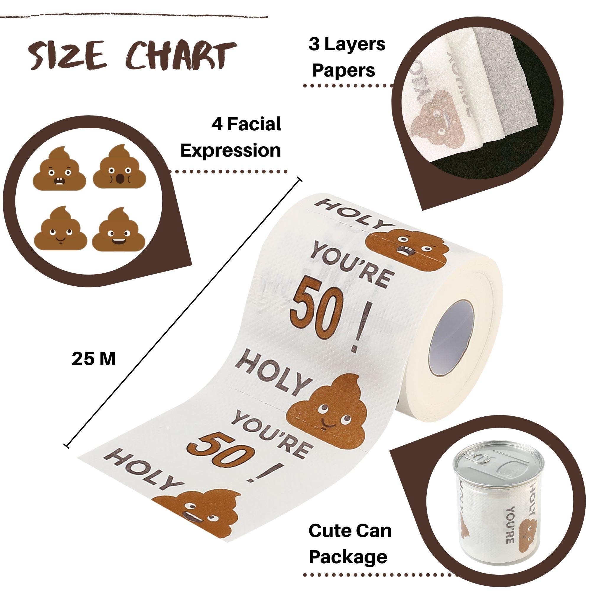 Multipurpose Prank Paper: These toilet tissue rolls can be used for various purposes on the 50th birthday of your loved one. You can use the funny wrapping paper for party decoration and party supplies, or as a birthday gift. The 50th birthday toilet paper comes in a cute gift box to show how much you care on their big day.