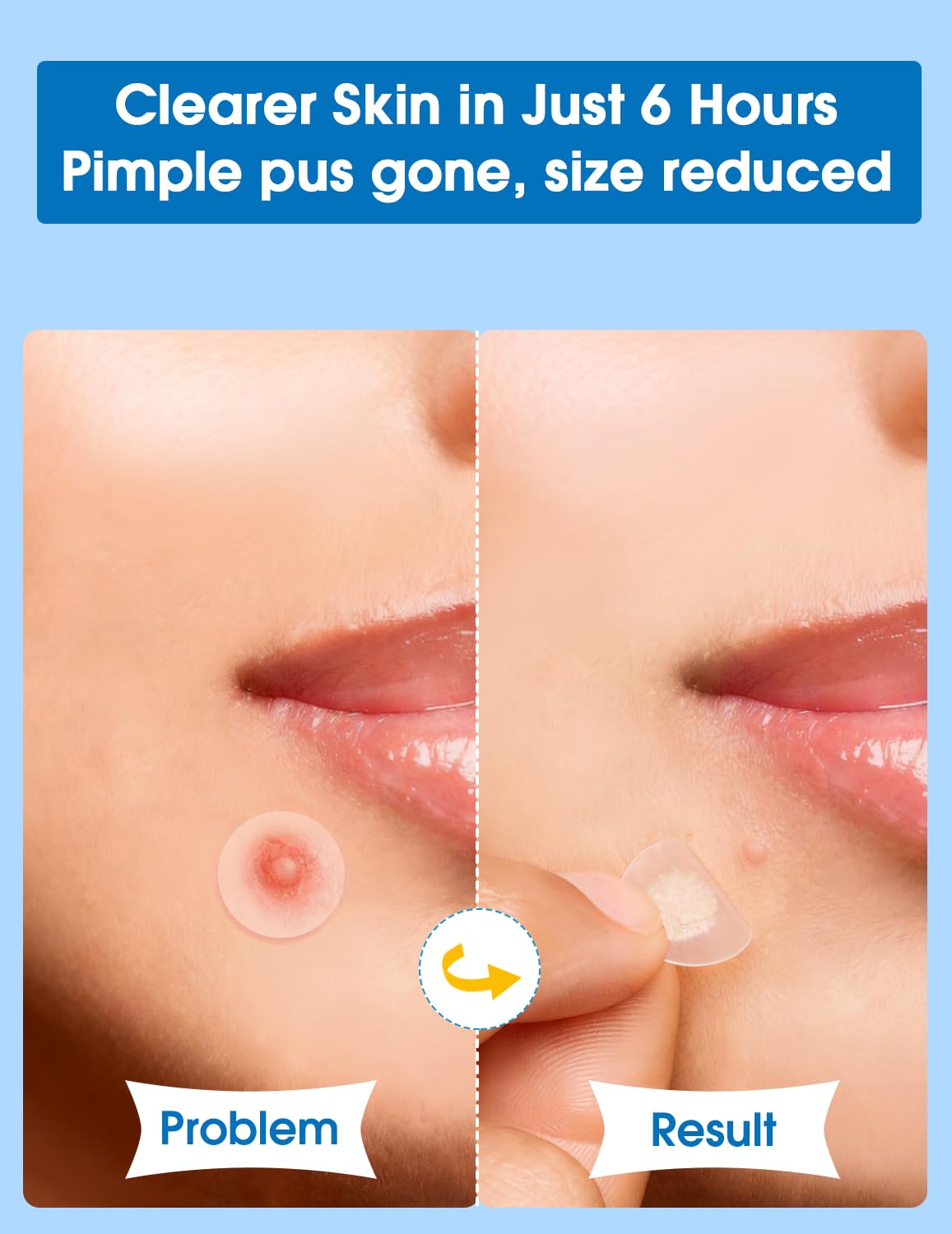 β±οΈ [Results in 3-6 Hours]: Tested and proven to work, these hydrocolloid patches absorb excess oil and fluids while keeping your skin protected. Apply before sleeping, and wake up to clearer skin without the need for popping. β [Easy Application and Removal]: Simply cleanse the acne area, apply a patch slightly larger than the blemish, and leave it on overnight. Removal is easy and painless, with no redness or irritation. The design ensures minimal waste and no peeling errors.