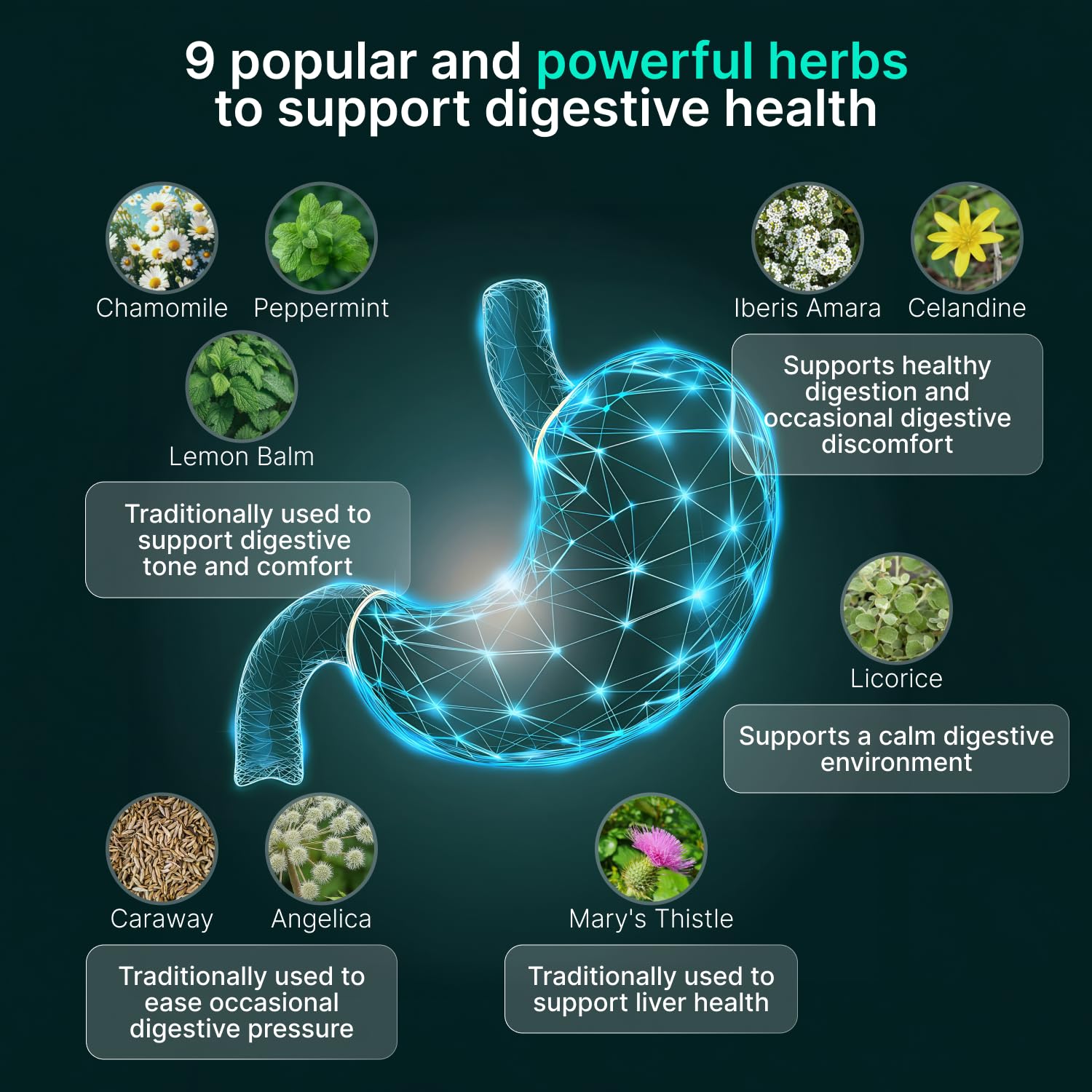 GENTLE, FULL-SPECTRUM DIGESTIVE SUPPORT – IBShield combines 9 time-tested herbs including Iberis Amara, Chamomile, Angelica, and Peppermint to support overall digestive comfort. This multi-herb blend promotes a balanced gut environment and helps maintain digestive well-being after meals or during occasional discomfort.