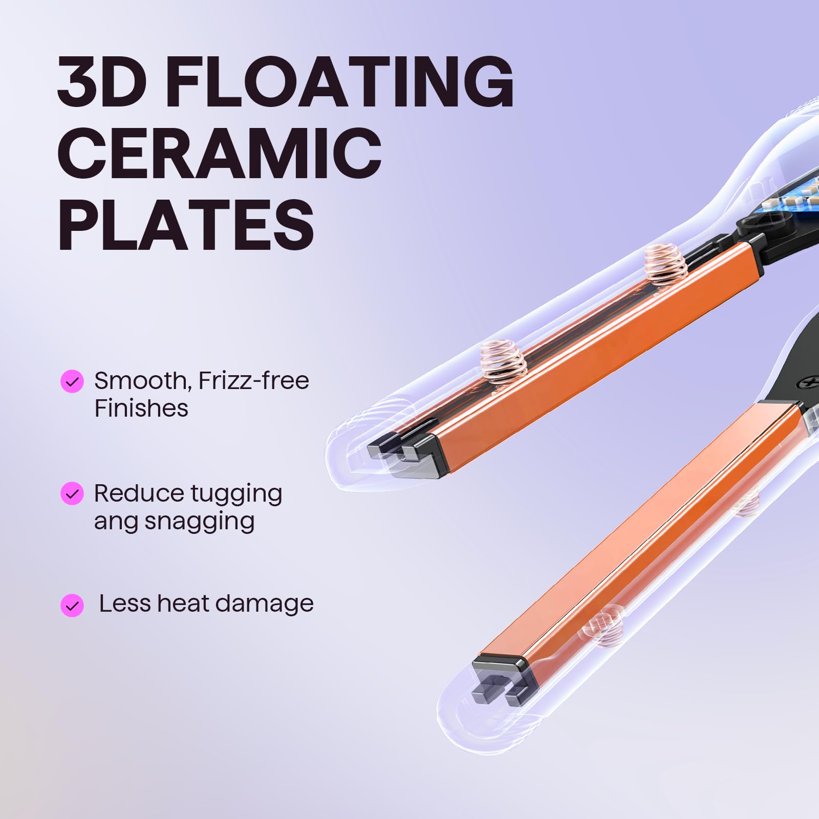 More Shine and Less Frizz: 3D floating plates means that it can lock in natural moisture, reduce hair pulling, and create silky, shiny, and frizz-free. So it is normal to have a gap between the plates when you close this small hair iron. If you want the plates to contact fully, just push it harder