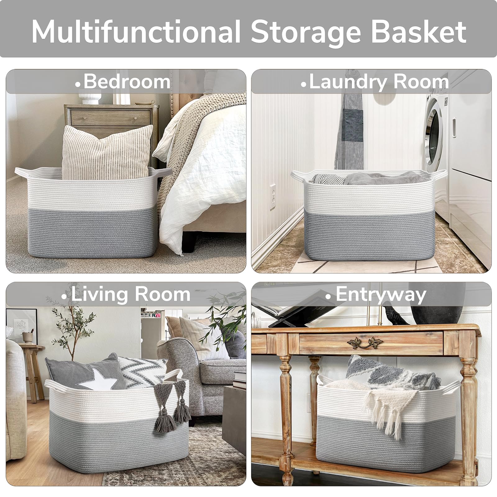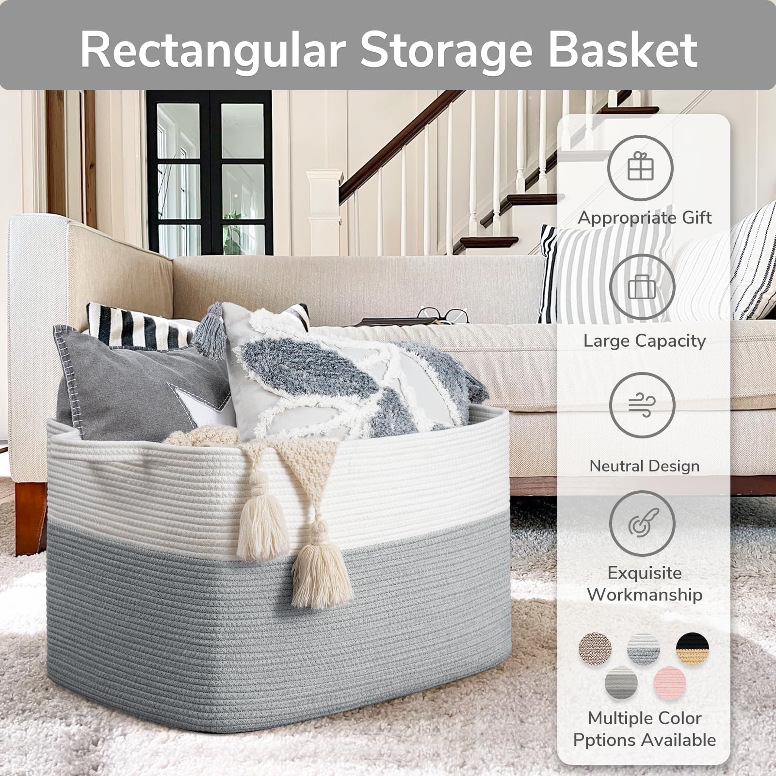 Versatile Storage Solutions: This large rectangle basket is versatile and can be used anywhere in the home. It is a perfect storage basket for the living room, laundry room and bedroom. It not only provides convenient storage space but also adds beauty and tidiness to the home