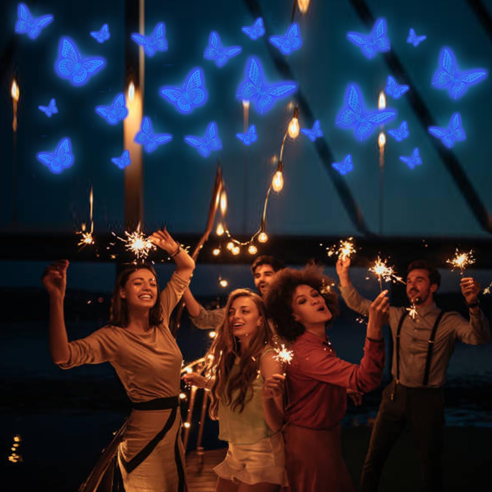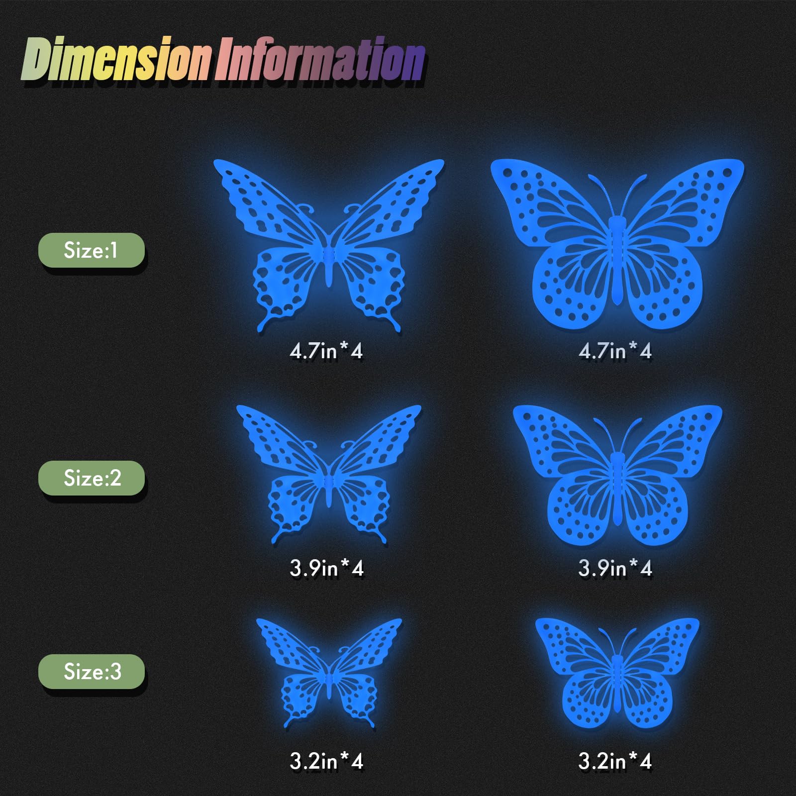 【Package Included】24 Pcs Glowing Butterflies: 12 pcs Style 1, 12 pcs Style 2, each style has 3 sizes(3", 4", 5"). Coming with 24 Pcs double sided adhesive dots.