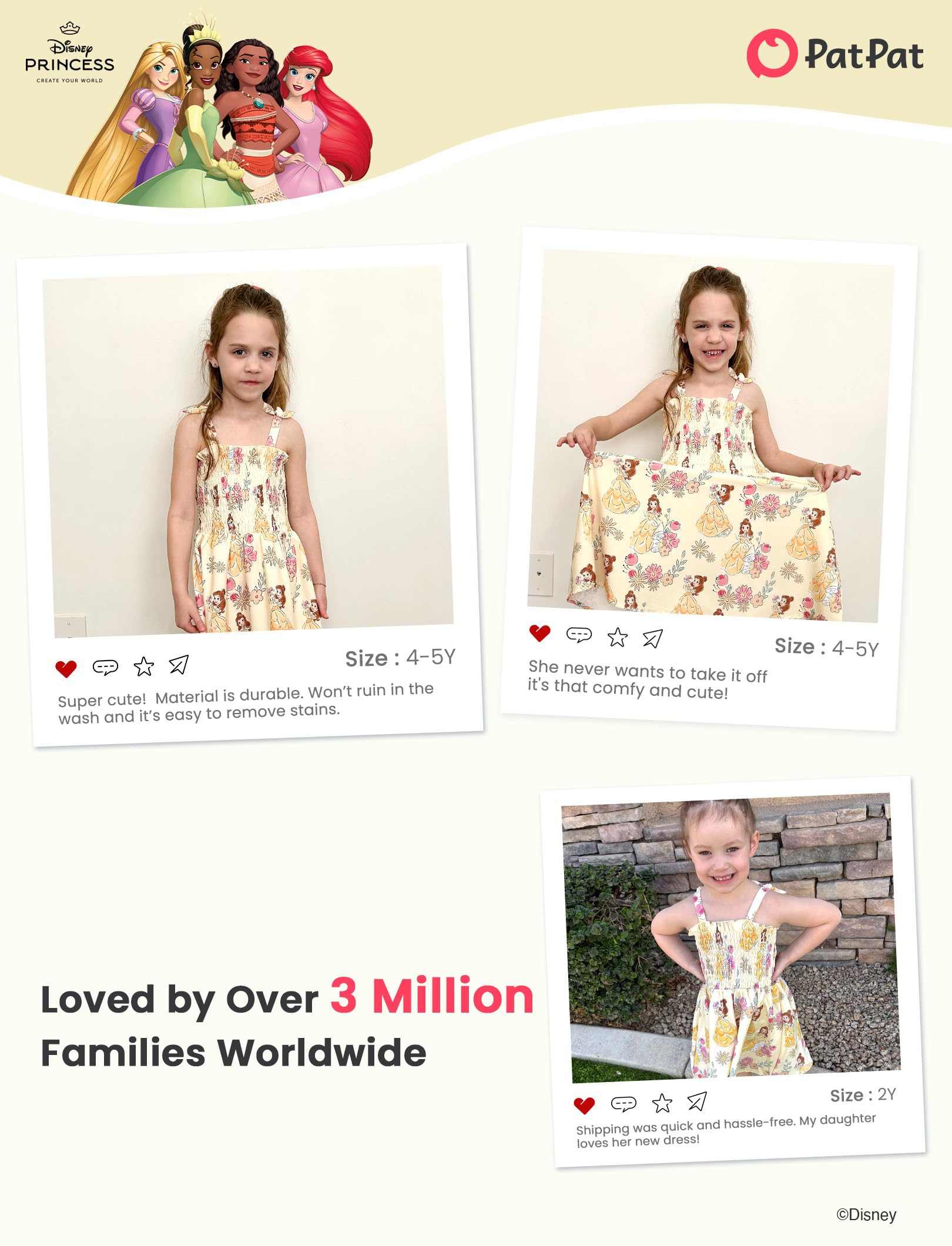 Charming & Unique Designs: Let your little one embrace the beauty of a tale as old as time with this charming sundress featuring Belle from Beauty and the Beast. This yellow sundress is adorned with delicate floral prints and illustrations of Belle in her elegant golden gown, creating a magical and graceful look