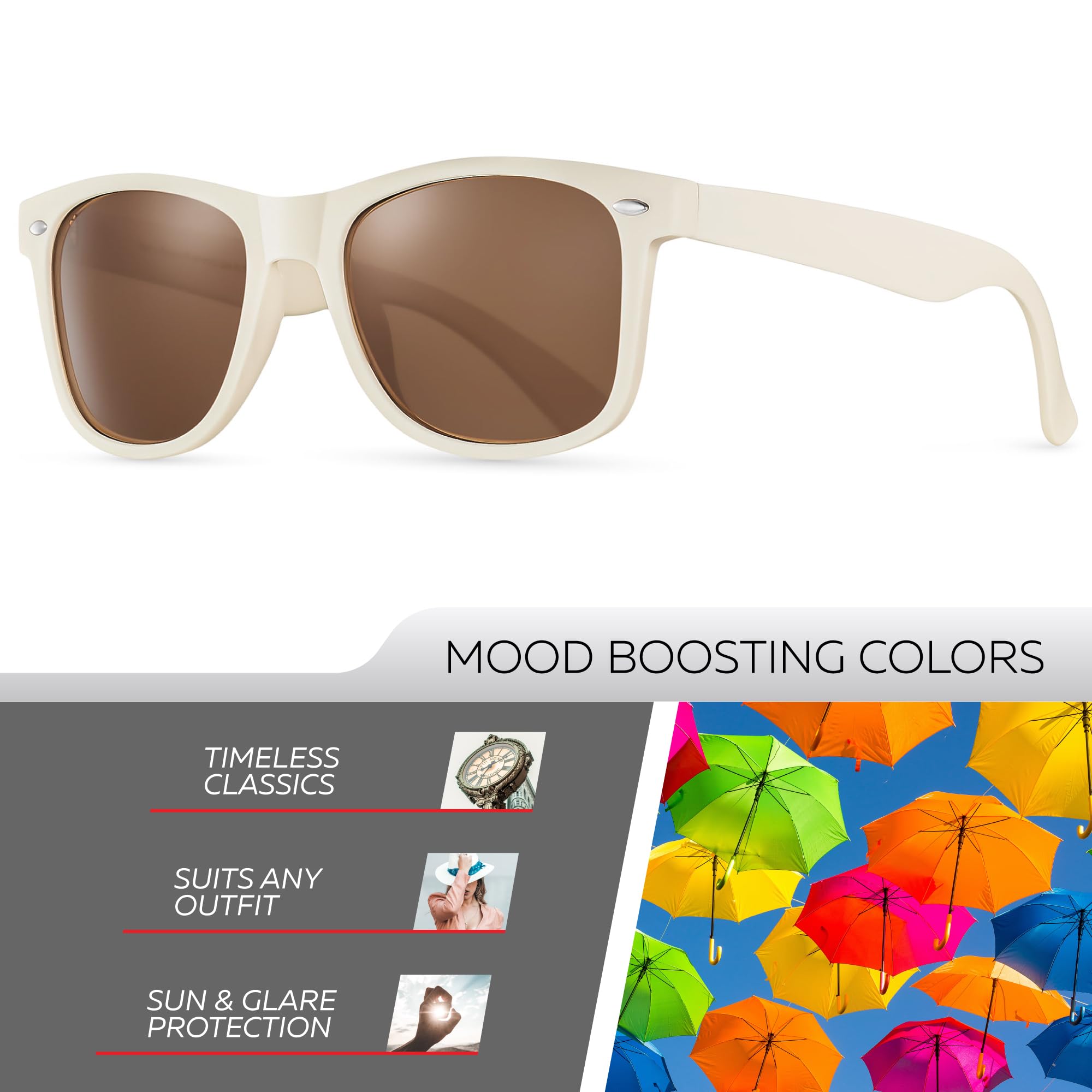 🕶️ DESIGNED TO PLEASE ANY TASTE, ANY SHAPE AND MATCH ANY OUTFIT: The Retro Rewind Sunglasses are a mixture of vintage style, contemporary fashion, and modern technology. The sunglasses will put an exclamation point on your casual, business casual or athletic outfit and help you look sharp, crisp, and sophisticated! Available in 50+ color combinations.
