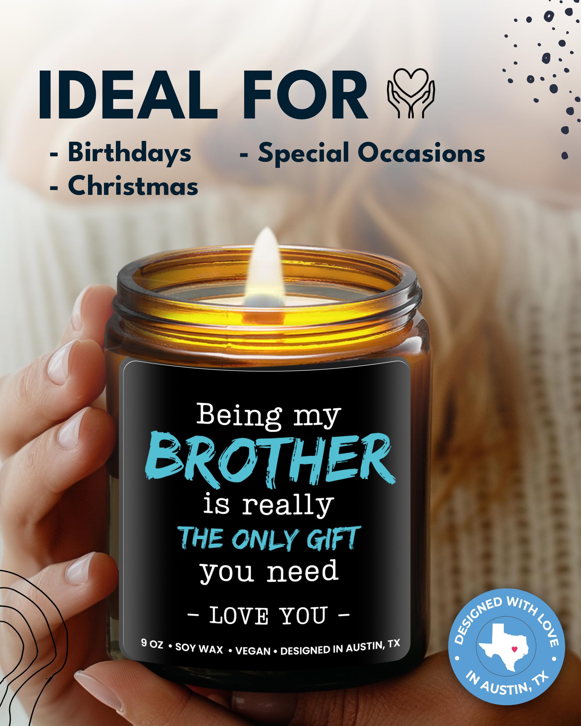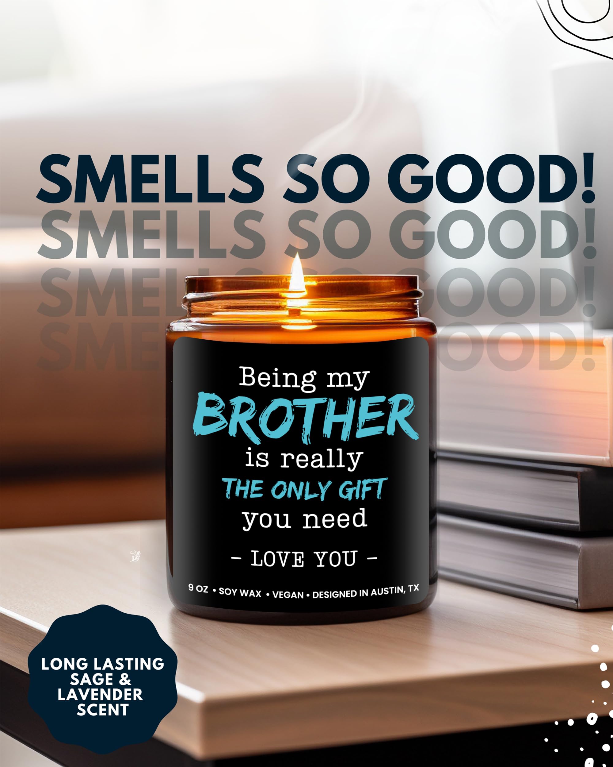 💠Funny Gifts for Brothers: These woodwick candles are a fun way of showing love to your brother! It has a cool message on the label that says "Being My Brother Is The Only Gift You Need". Perfect gifts for adult brother, graduation gifts for brother, adult brother gift ideas, birthday gift for brother from sister & cool birthday gifts for brother!