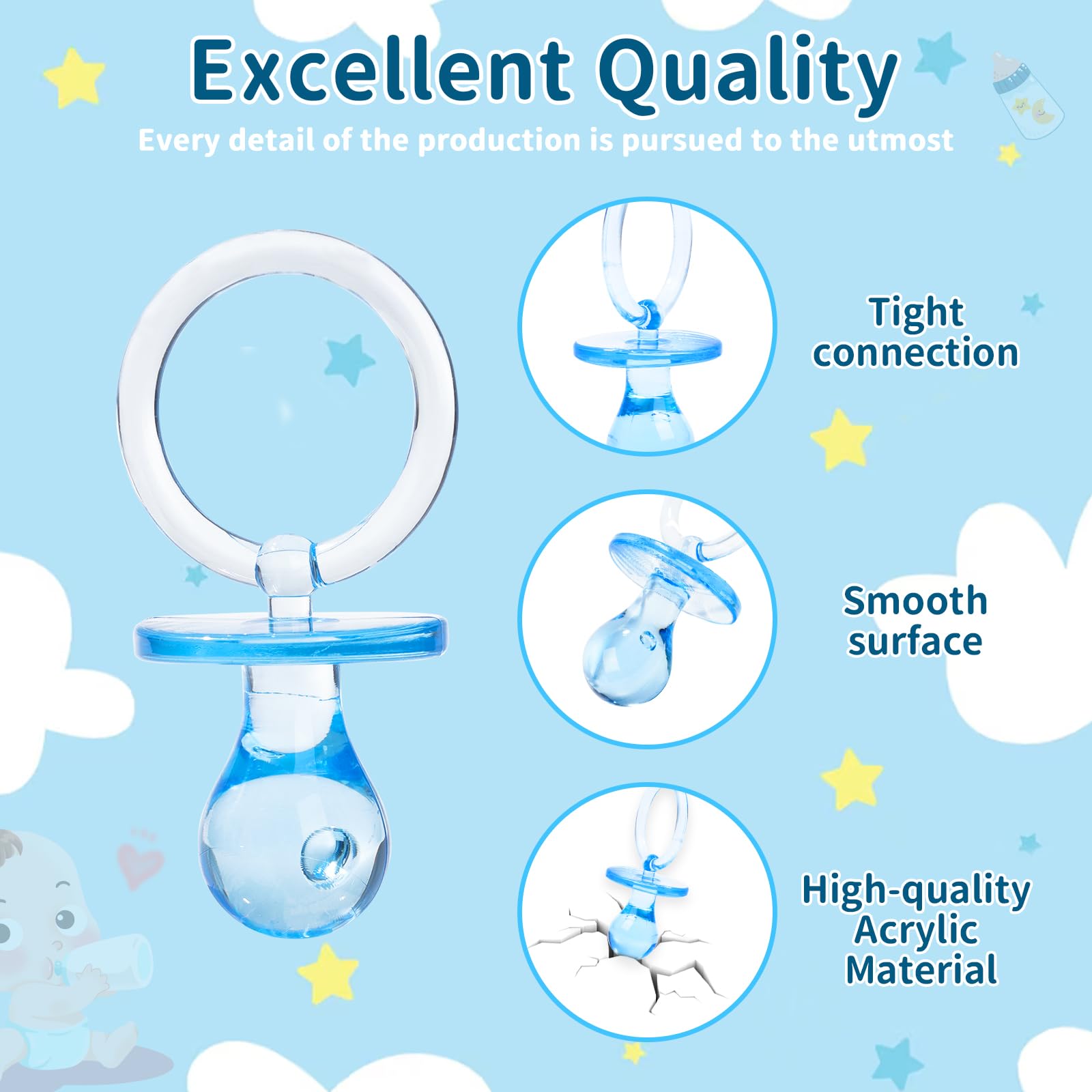 Reliable Acrylic Material - These pacifiers for baby shower game are made of high-quality acrylic material, which is smooth, durable, and odor-free. Safe to use as your table decoration or wear on your body