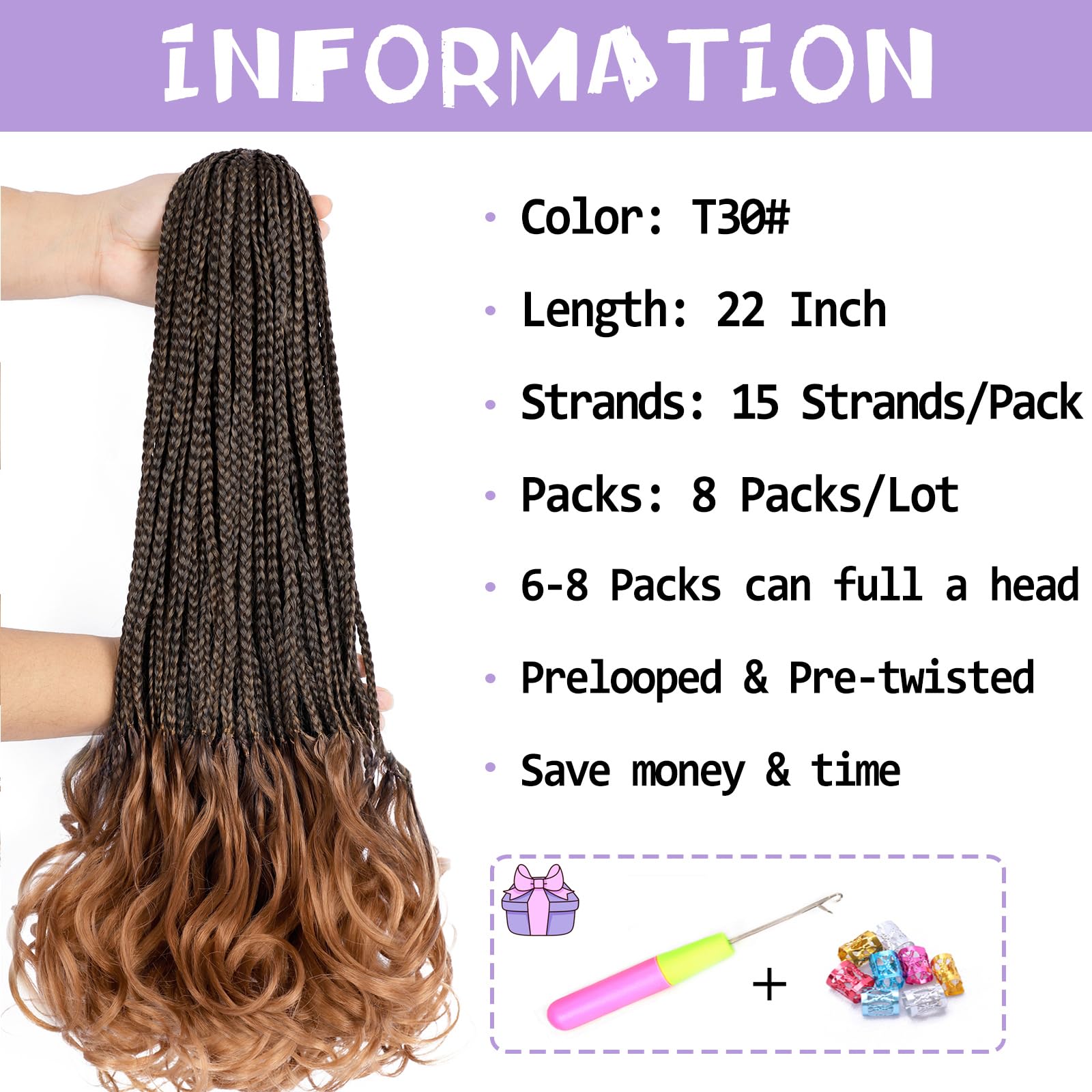 French Curl Braids Features: A nice ombre color with a rather subtle gradient, the ombre is very smooth in the transition. Each braid is very well made and durable, good texture and holds the curls well. More affordable than Beauty Supply store, since these are pre-looped, installation is much faster and cheaper than standard braids.