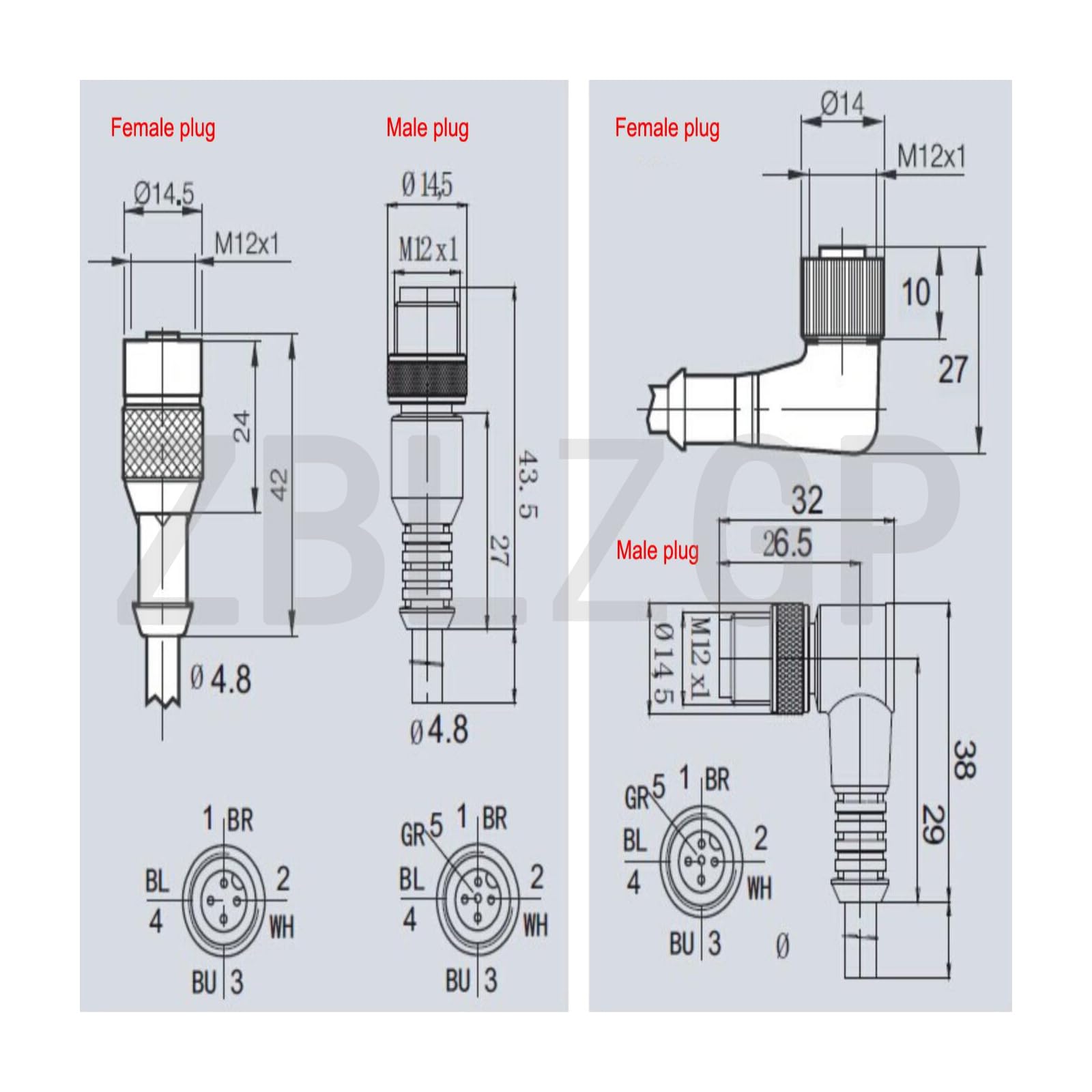 Product Description This M12 A-coded 8 Pin connector series offers versatile cable configurations for industrial automation, sensor connections, and harsh environment wiring needs. It includes 8-pin male-to-open cables, female-to-open cables, right-angle female-to-open cables, right-angle male-to-open cables, and male-to-female pre-assembled cables, ensuring compatibility with diverse equipment interfaces. Key Features Broad Compatibility : Compliant with M12 A-coding standard , ideal for sensors and signal transmission. Flexible Options: Straight or 90° right-angle connectors for tight spaces and stress relief. Robust Build : IP67-rated (varies by model), resistant to dust, water, and vibrations. Stable Performance: 8-core tinned copper wires with PVC/PUR jackets (selectable) for reliable signal integrity. Secure Connection: Threaded locking mechanism prevents accidental disconnections. Series Details Open-End Cables: Male/female open ends for custom termination (crimp/solder). Right-Angle Cables : Space-saving 90° design reduces cable strain. Pre-Assembled Cables: Male-to-female for plug-and-play device linking. Specifications Coding Type: A (signal/sensors) Pin Count: 8-core Wire Gauge: 22 AWG (0.34mm²) or customizable Material: PVC (oil-resistant) or PUR (flexible, chemical-resistant) Temperature Range: -25°C to +80°C