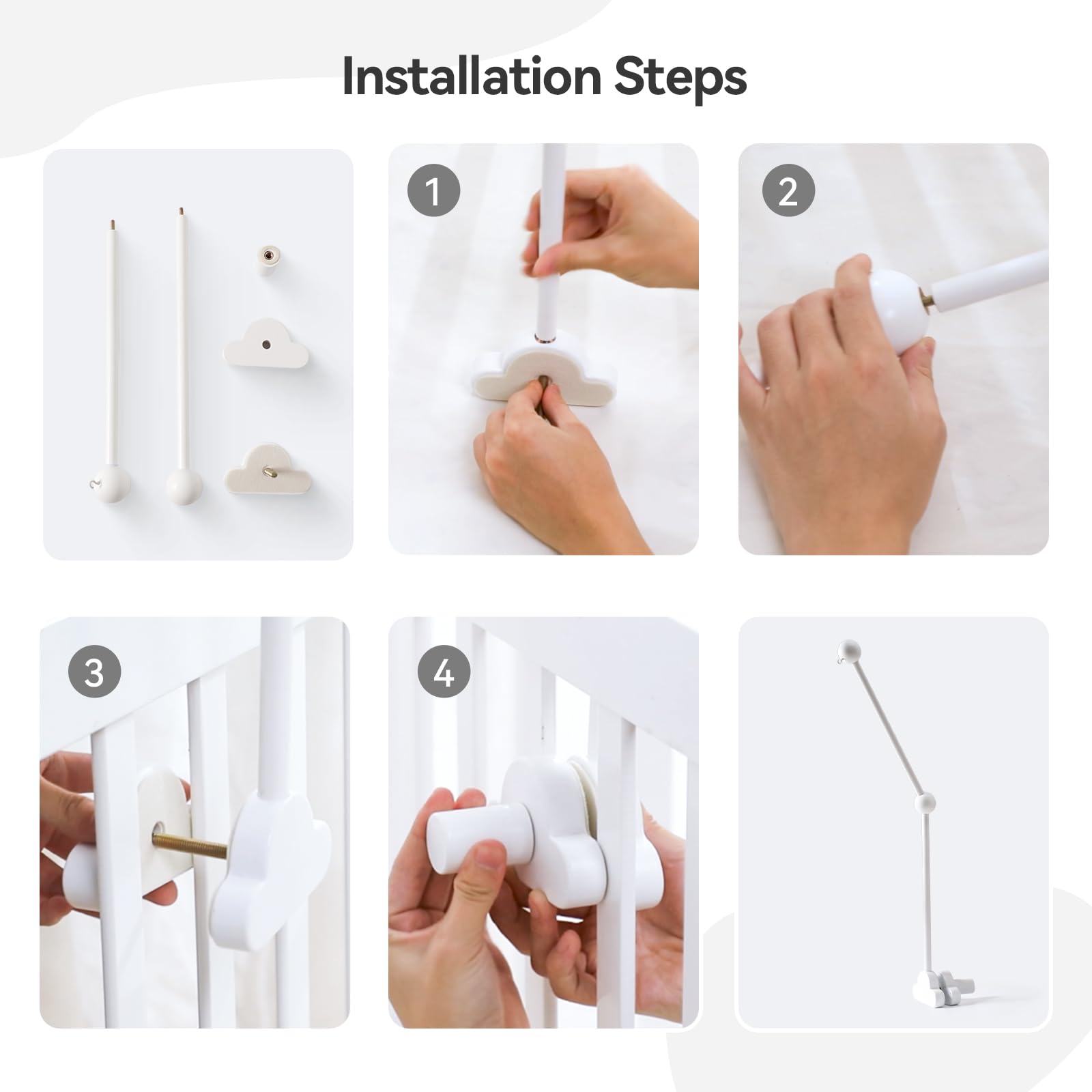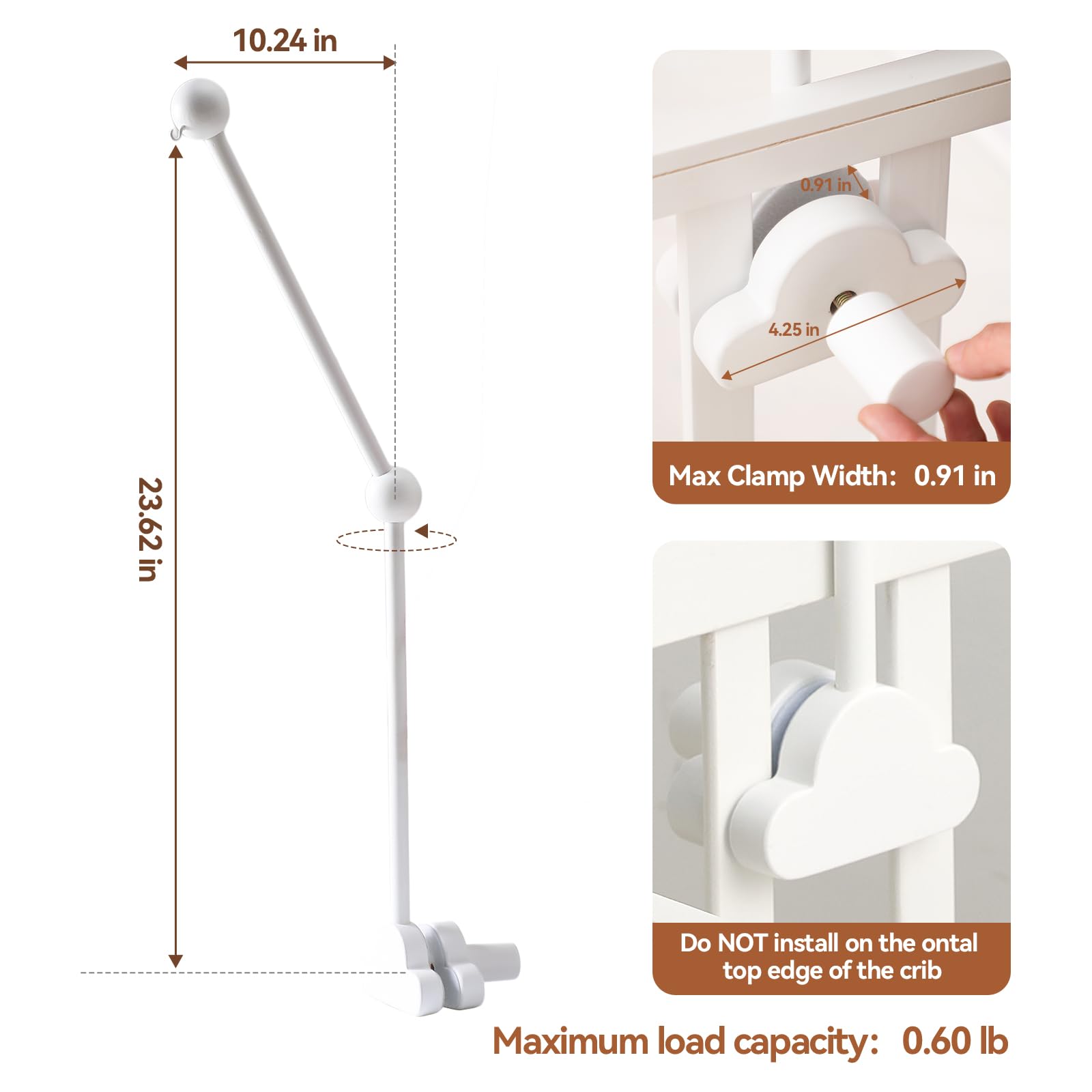 VERSATILE DESIGN: 24 inch adjustable mobile arm crafted from wood with elegant white finish and cloud-themed aesthetic, perfect for hanging mobiles, wind chimes, and other nursery accessories
