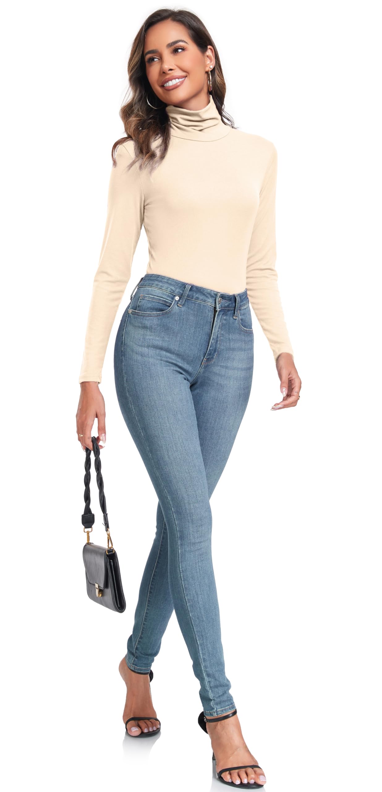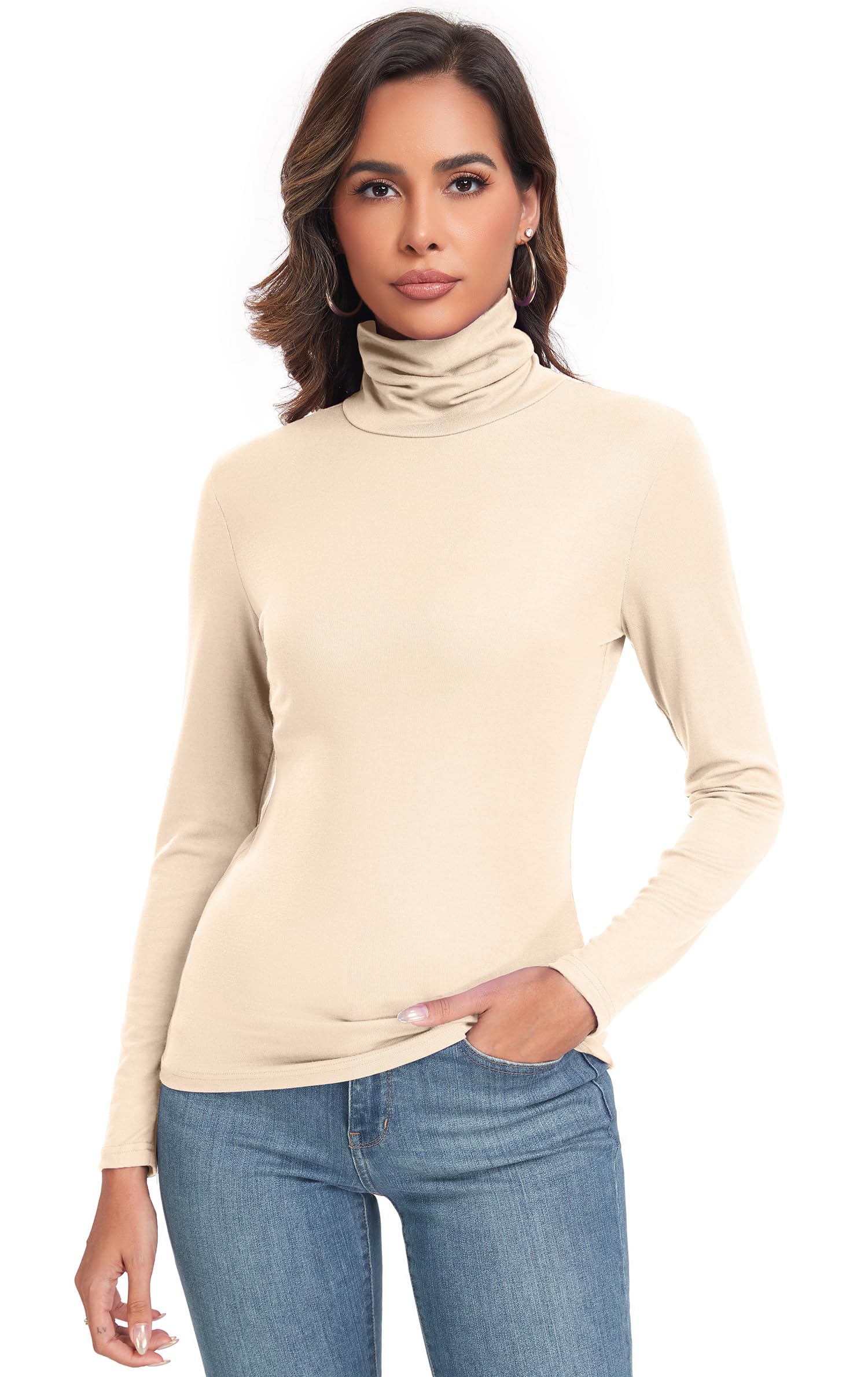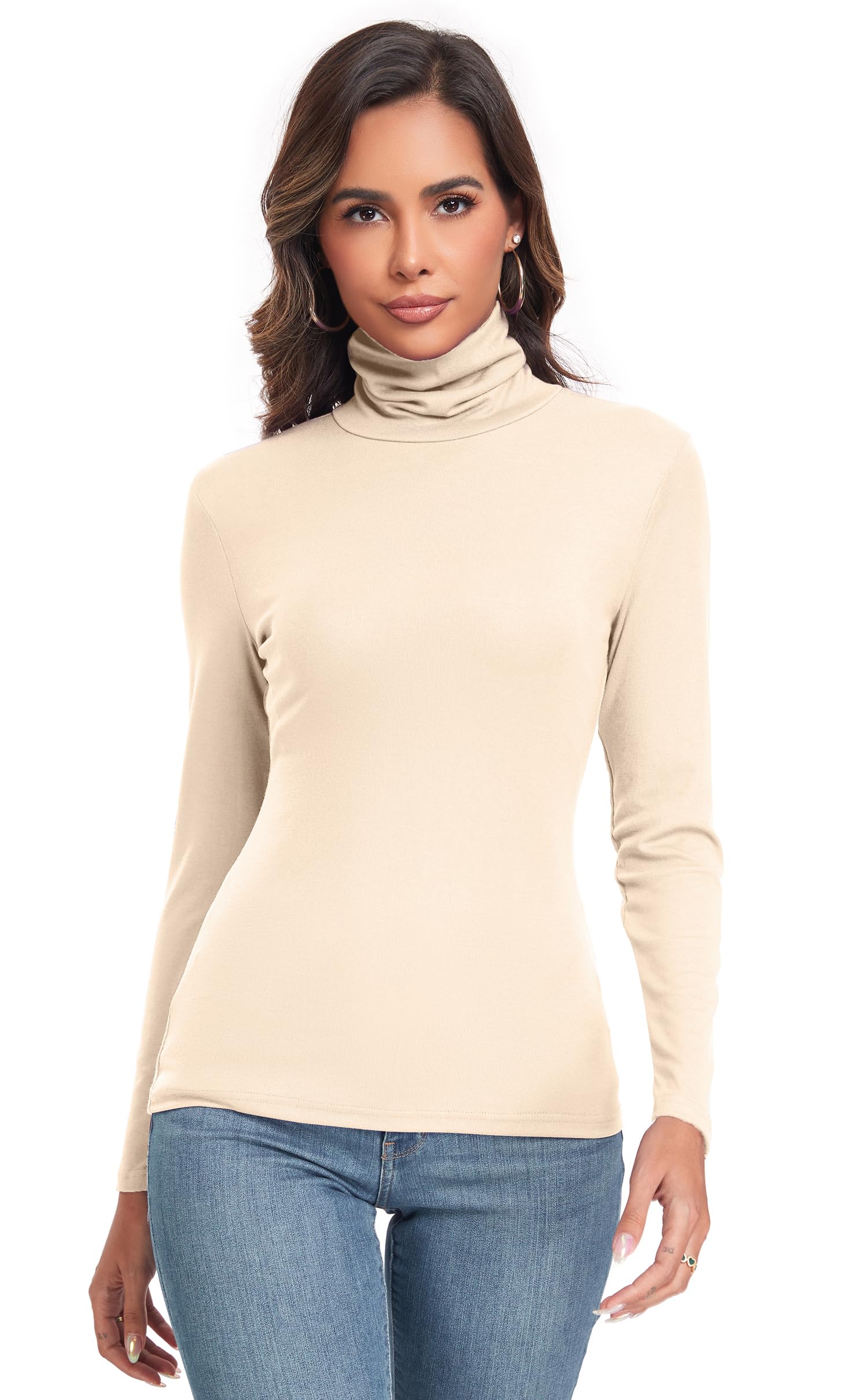 Description Womens Turtleneck Long Sleeve Shirts Thermal Underwear Tops Women Mock Neck Turtleneck Active Shirt Base Layer Long Sleeve Underwear Tops make yourself comfortable and stylish. Stretchy, lightweight but not see through. Slim fit but so soft and comfort. Our long sleeve turtleneck top can be easily paired with shorts, jeans, trousers, skirts, high heels, or boots. You'll look sexy, fashionable, and elegant in any occasion. Women's High Neck Long Sleeve Turtleneck T-Shirt great for cold weather, this turtleneck makes from stretchy and breathable fabric and snug fits to your neck. A necessity for every woman's wardrobe! Machine wash, Not fade, Us Standard Size. Please refer to the size chart before purchasing. Size Chart Small --- Bust 33.0" --- Sleeve 22.8" --- Length 24.4" Medium --- Bust 35.4" --- Sleeve 23.2" --- Length 24.8" Large --- Bust 37.8" --- Sleeve 23.6" --- Length 25.2" X-Large --- Bust 40.2" --- Sleeve 24.0" --- Length 25.6" XX-Large --- Bust 42.6" --- Sleeve 24.4" --- Length 26.0" Note: 1. Please allow 0.4-0.8 inch differ due to manual measurement. 2. Due to the light and different computer monitor, the color may be slightly different as pictures.