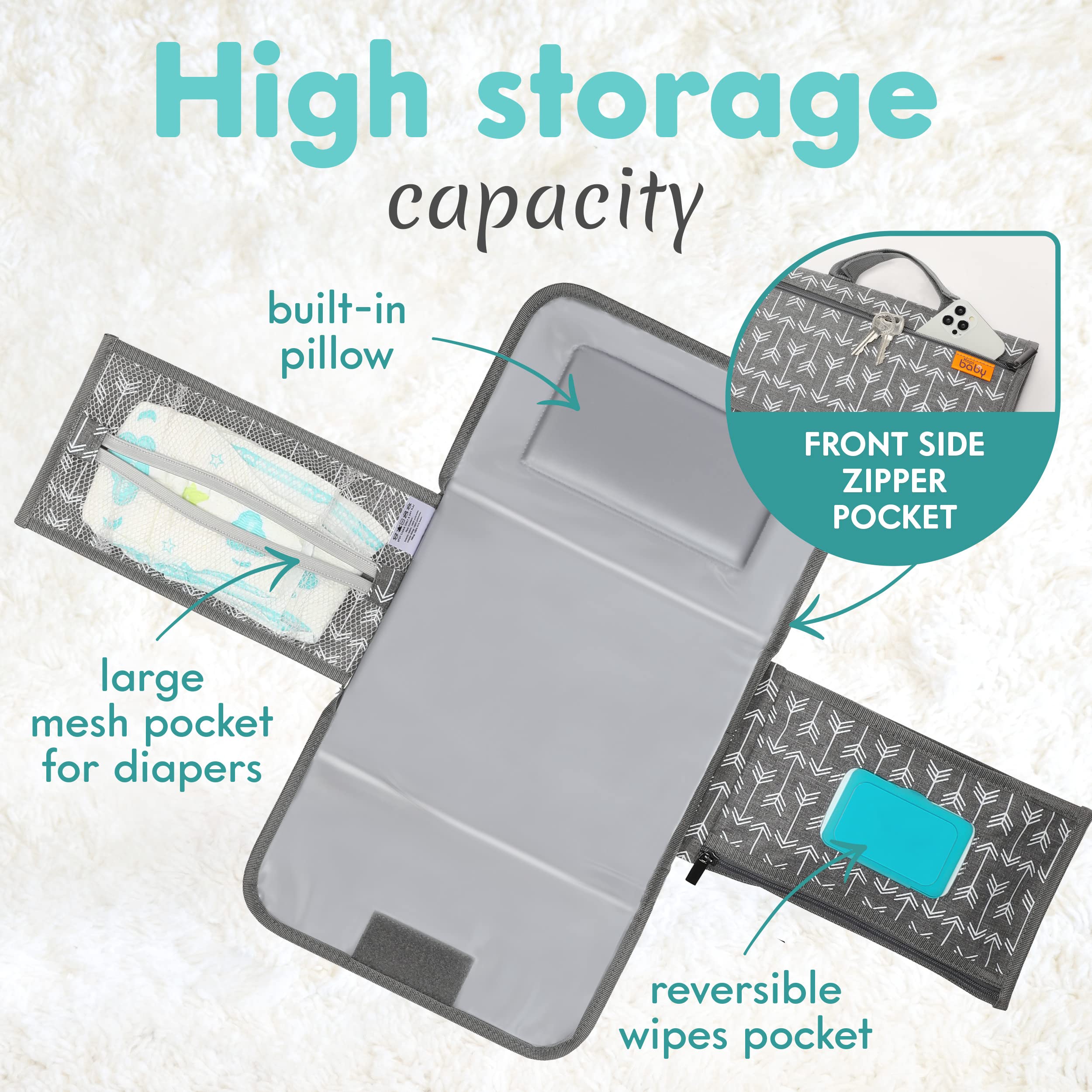 Diaper Change Anytime, Anywhere - Our diaper changing station with a built-in pillow is your ultimate partner. Whether inside or outside, this diaper changing mat lets you change your baby's diaper on any flat surface!