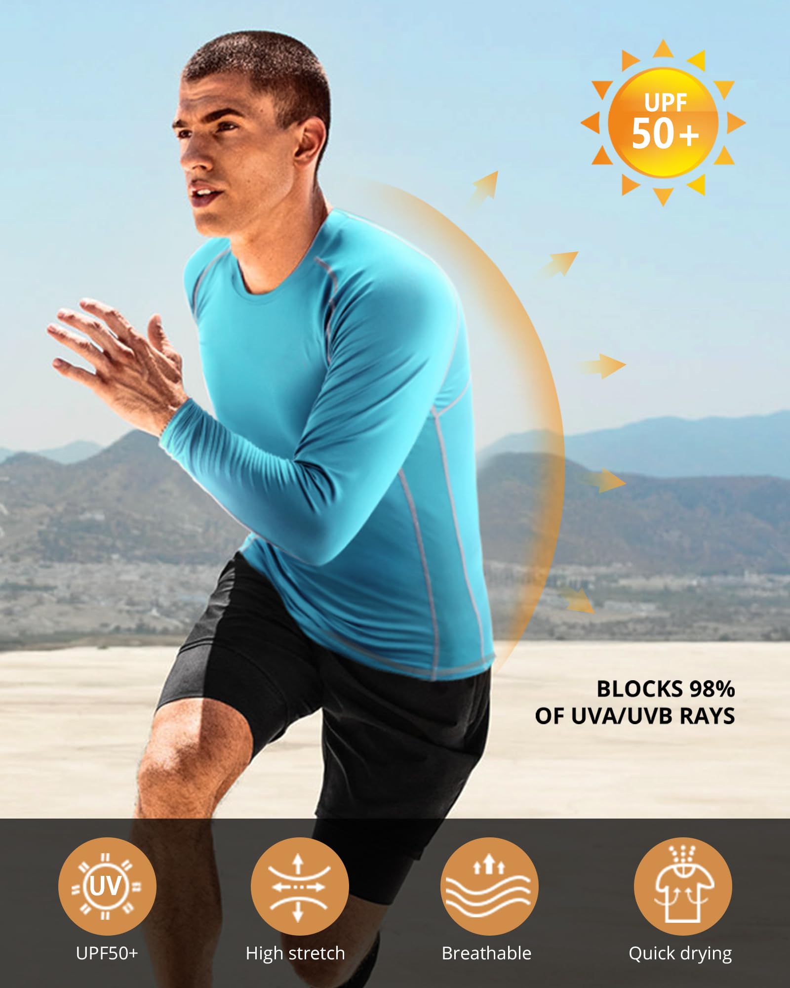 【Quick Dry Fabric】This men's compressions long-sleeve t-shirt, made from quick-drying fabric, offers excellent moisture-wicking, ensuring you stay cool, dry, and comfortable during workouts, providing optimal skin comfort