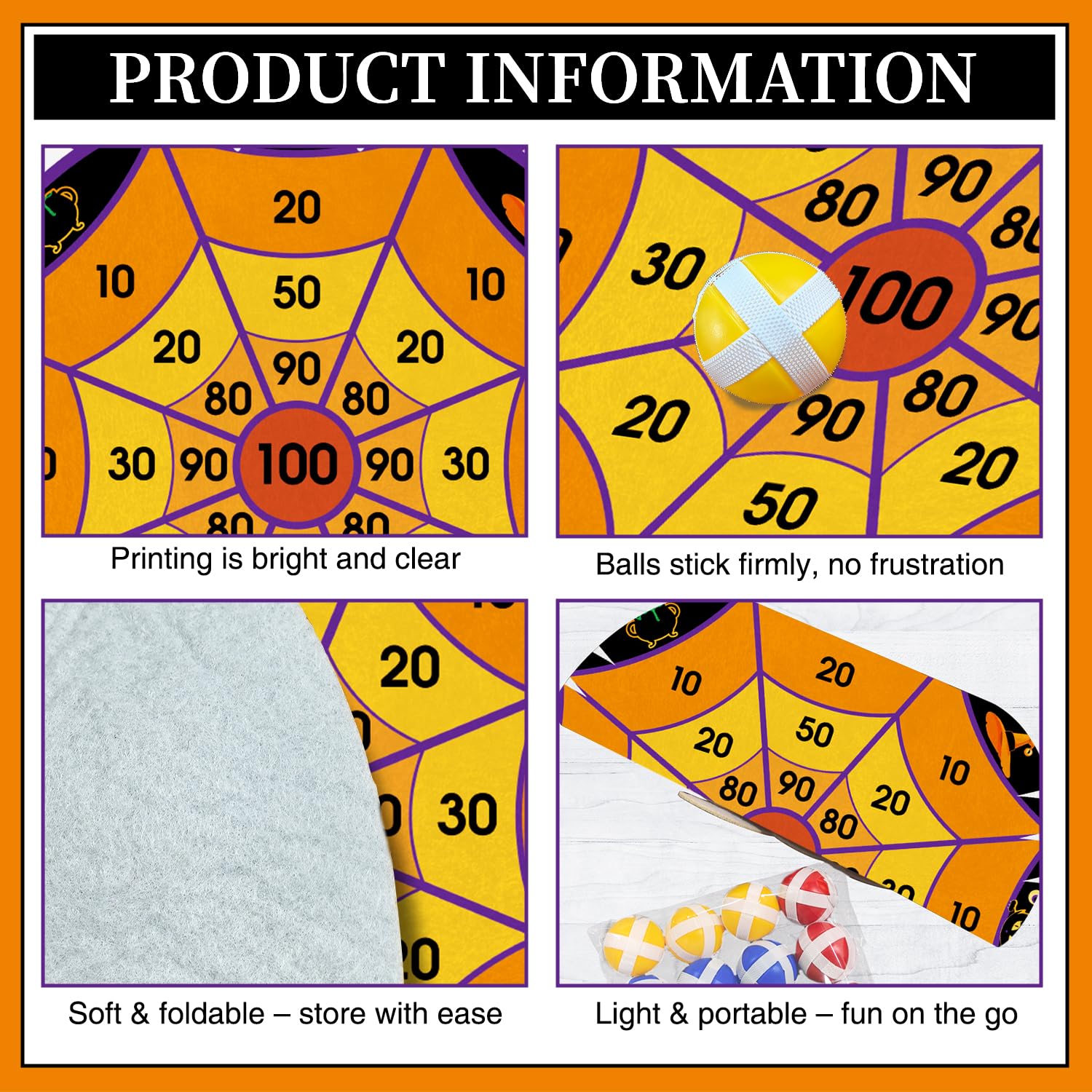 Halloween Carnival:Get ready for spooky fun with our Halloween dart board set! It includes 1 board and 12 sticky balls. Simply open the package and dive into the excitement—no complicated setup needed!