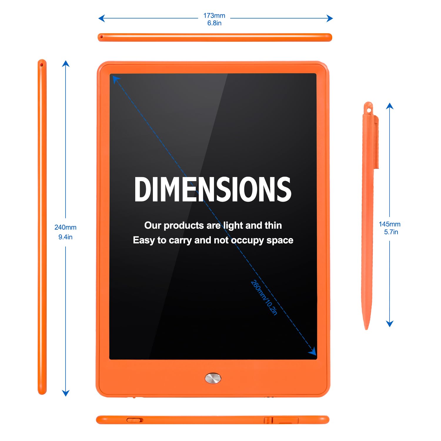 Travel Essentials for Kids: Kids can spend happy time anytime and anywhere, enjoying the fun of drawing, counting, doodling, and spelling phrases. The 10 Inch LCD Writing Tablet is lightweight and ultra-thin, It is easy for you to carry and can be easily slid into your backpack and bags, not only play at home, but also in cars, outdoors, plane, and school