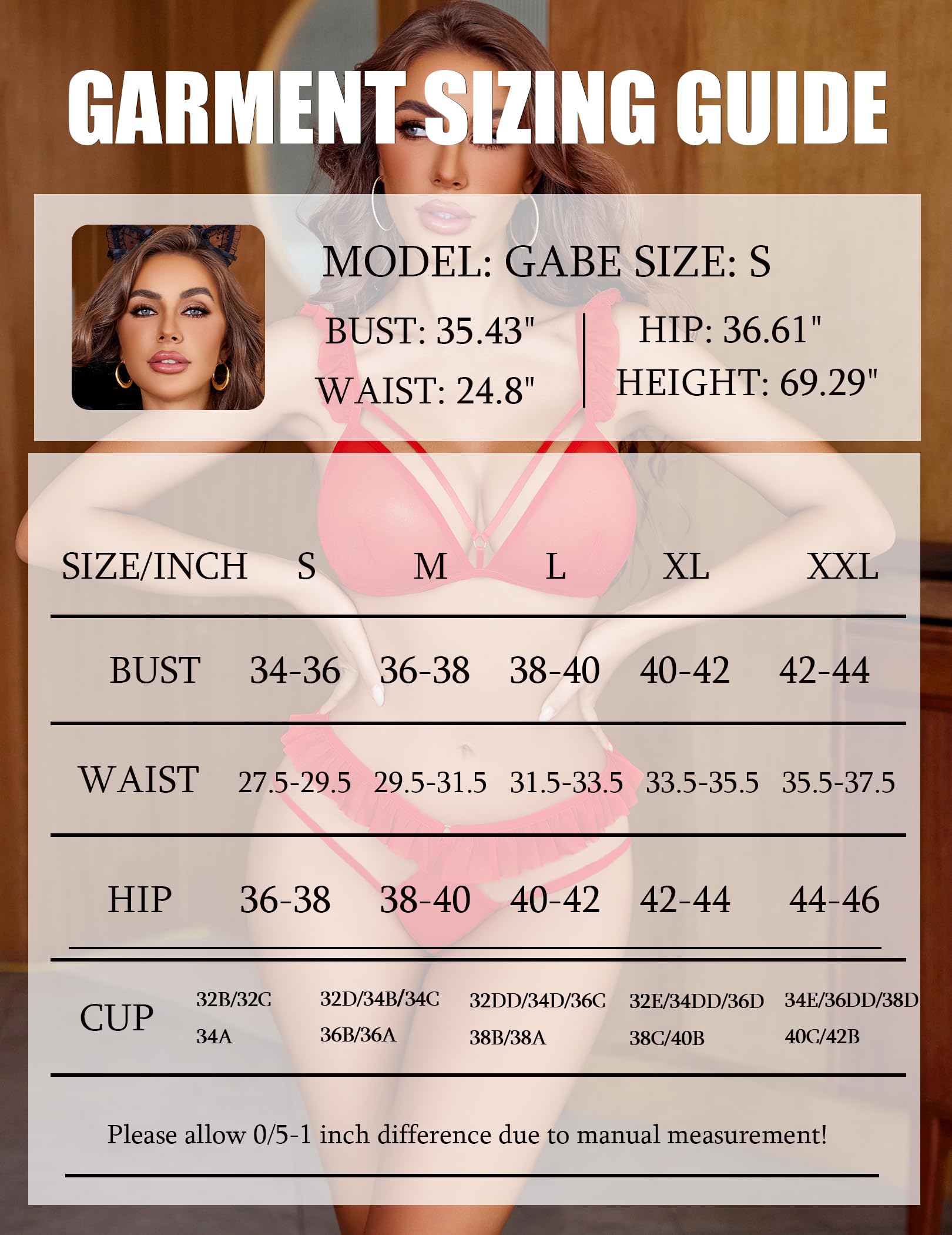 【Sheer Mesh Fabric】The ruffle lingerie set is made of high-quality mesh fabric, breathable, skin-friendly and stretchy, sheer mesh effect creates a tantalizing visual appeal
