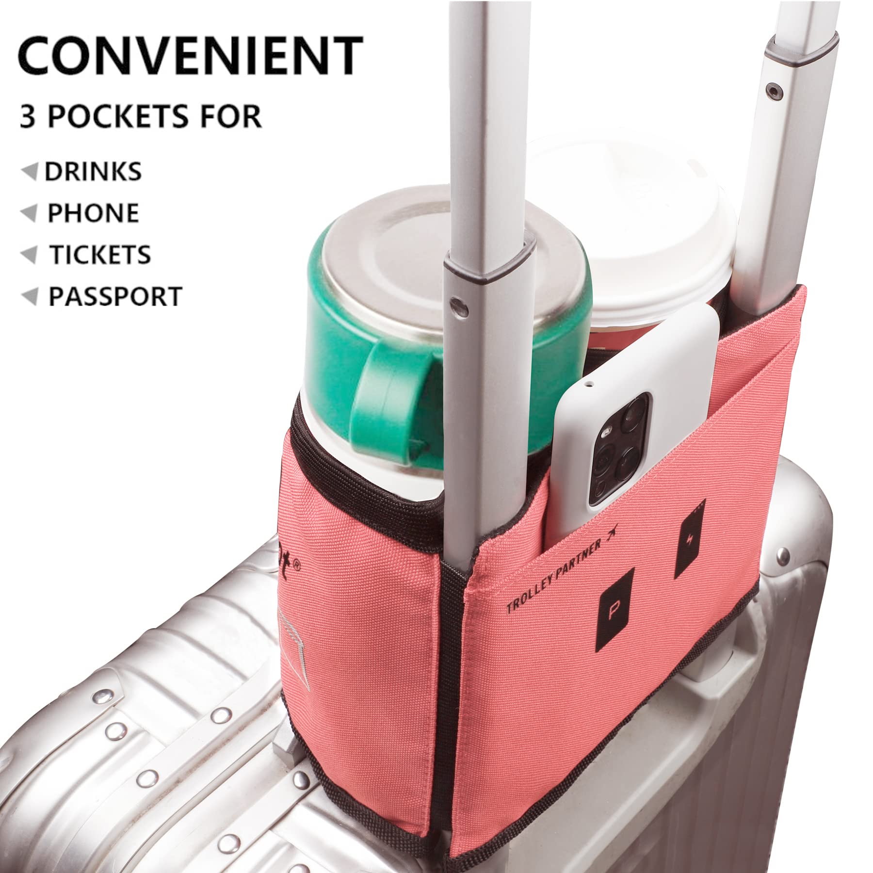 𝐅𝐢𝐭𝐬 𝐌𝐨𝐬𝐭 𝐋𝐮𝐠𝐠𝐚𝐠𝐞 𝐇𝐚𝐧𝐝𝐥𝐞𝐬: Our cup holder is designed to fit most roll-on suitcase handles, making it easy to use and convenient for any traveler. You can adjust the magic tape to fit your luggage handles. Notice: This suitcase drink holder doesn't fit the single-tube rolling suitcase or wide handle suticase.
