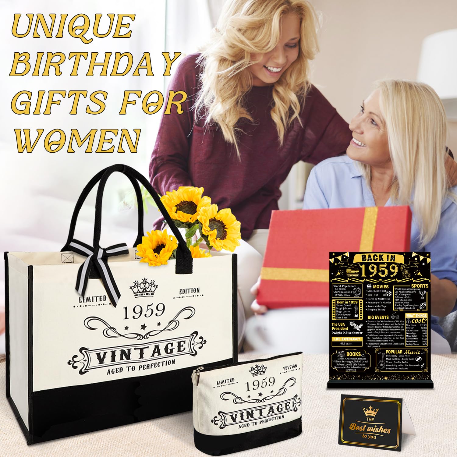 Great Gift for Her 66th Birthday: This gifts set for 66th birthday women contains: 1 X 1959 beach bag, 1 X cosmetic bag, 1 X back in 1959 poster, 1 X greeting card. Unique canvas tote bag gifts set will be a adorable gift for women's 66th birthday. This birthday 66 gifts themed idea makes the perfect choice for putting a smile on her face on their special day.