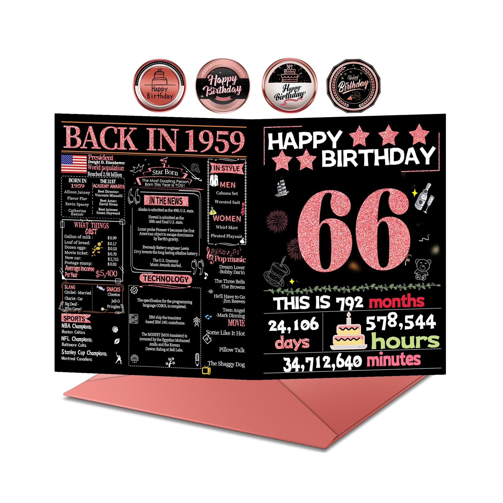 66th Birthday Present Idea: The tote bag cover and back in 1959 poster are filled with fun facts and trivia from 1959, making it a great gift idea for women's 66th birthday. The 66th Birthday basket is for women who was born in 1959 and ready to celebrate their 66th birthday, to relive fond memories of the past with family and friends. It is a thoughtful 66th birthday gift box for women who was born in 1959.