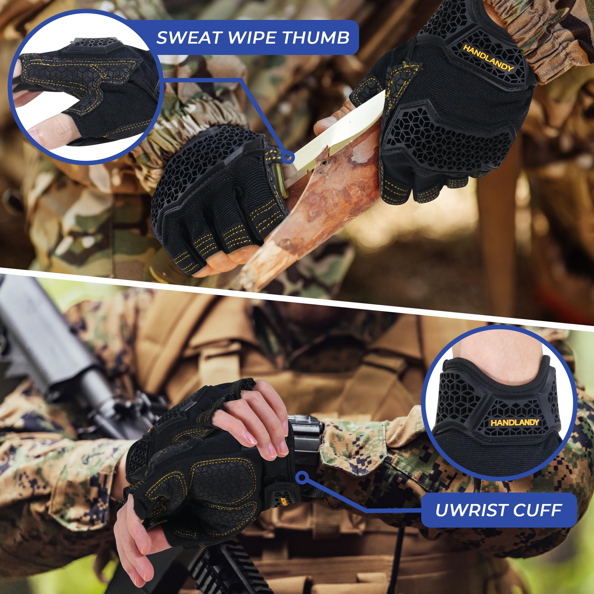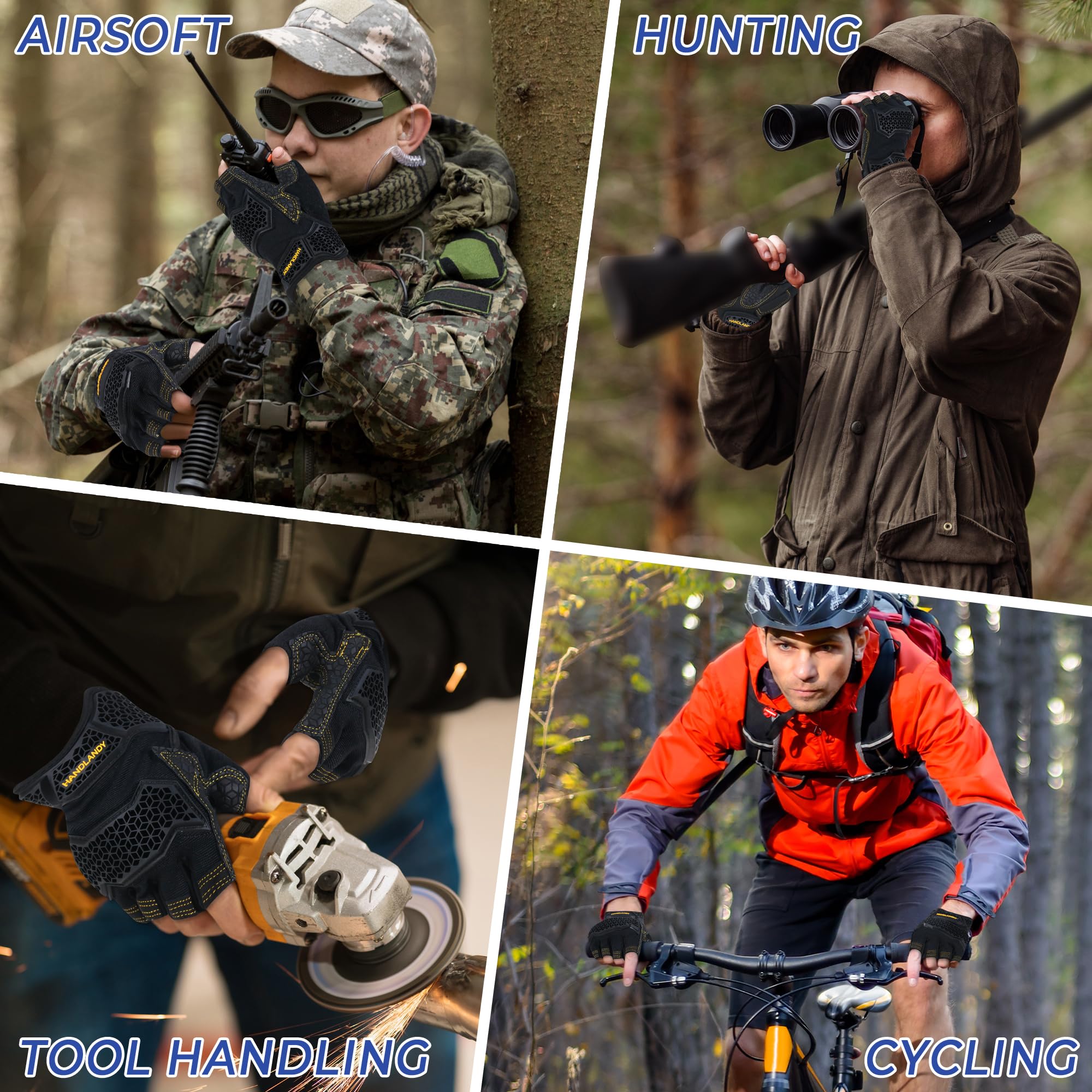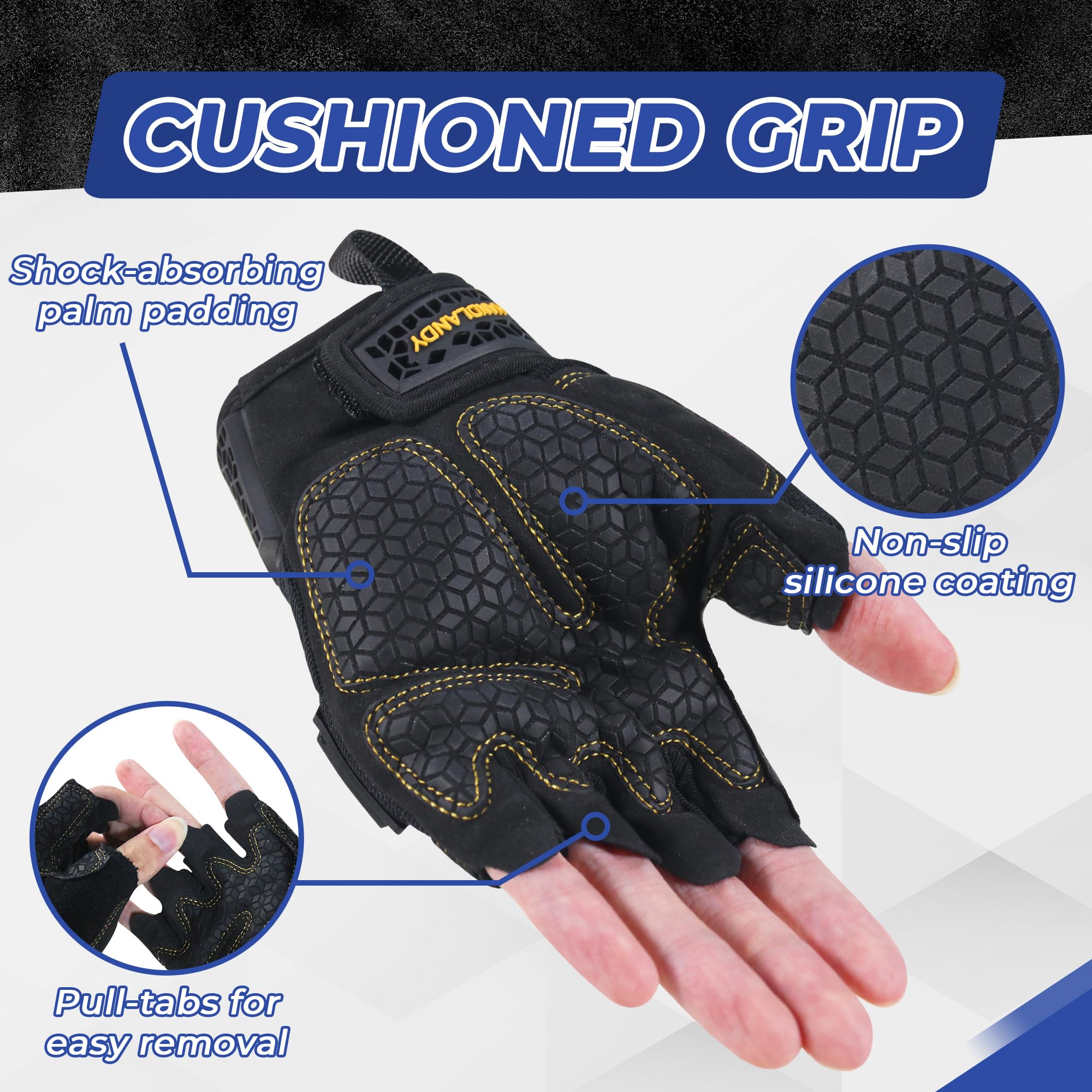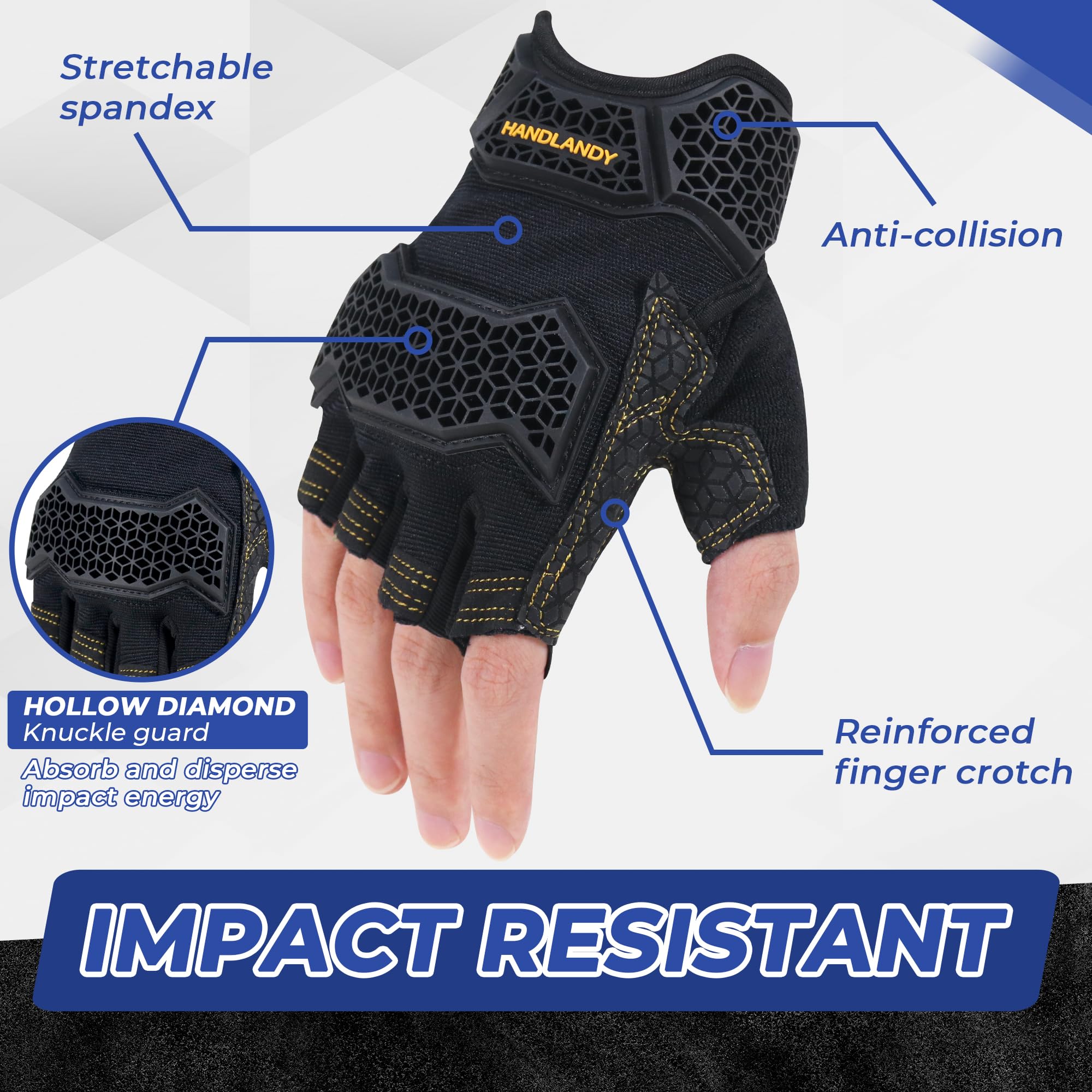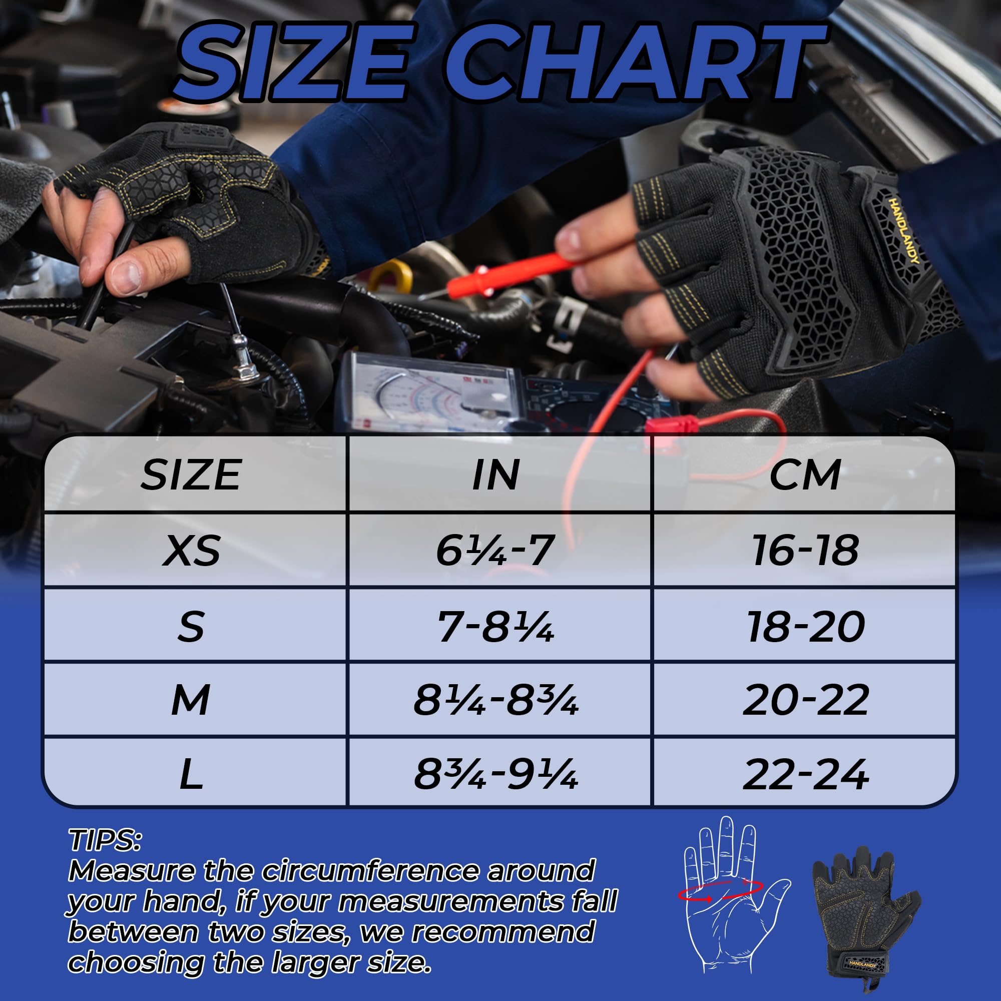 Flexible Impact Resistant Half finger work gloves: TPR strong knuckle protection keeps your hand safe while working without limiting dexterity, keeps your hands warm while still being protected from scrapes and bruises, and also able to easily use a pen to write or handle small objects. Pull off easy with the built-in tabs along the fingers Concise Sizing Guidance: For optimal fit with our upgraded backhand material, we recommend selecting one size larger than your standard glove size.
