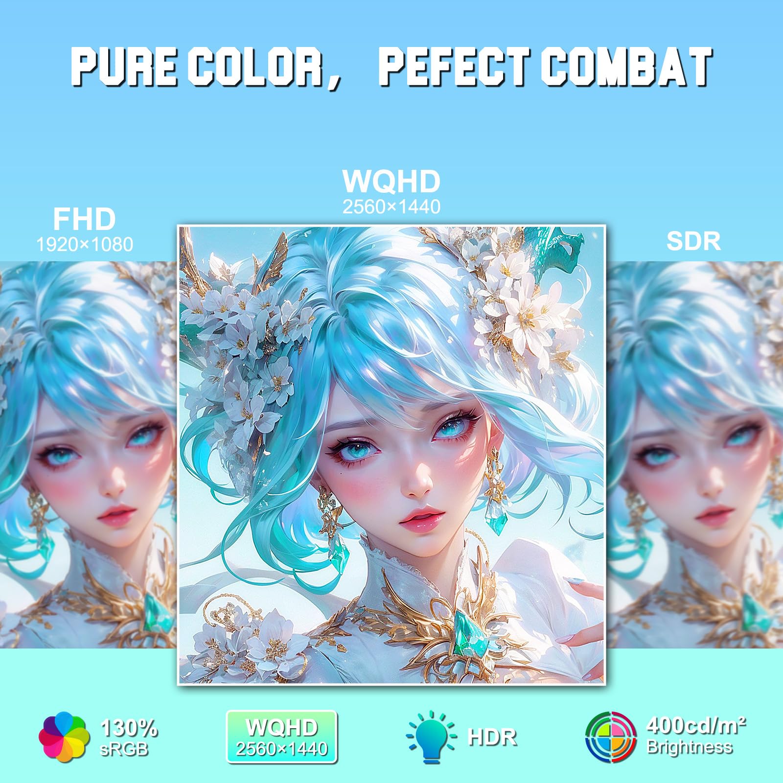 Screen Colors: sRGB 130%丨10Bits 丨DCI-P3 95%丨HDR丨178°V/H Viewing Angle