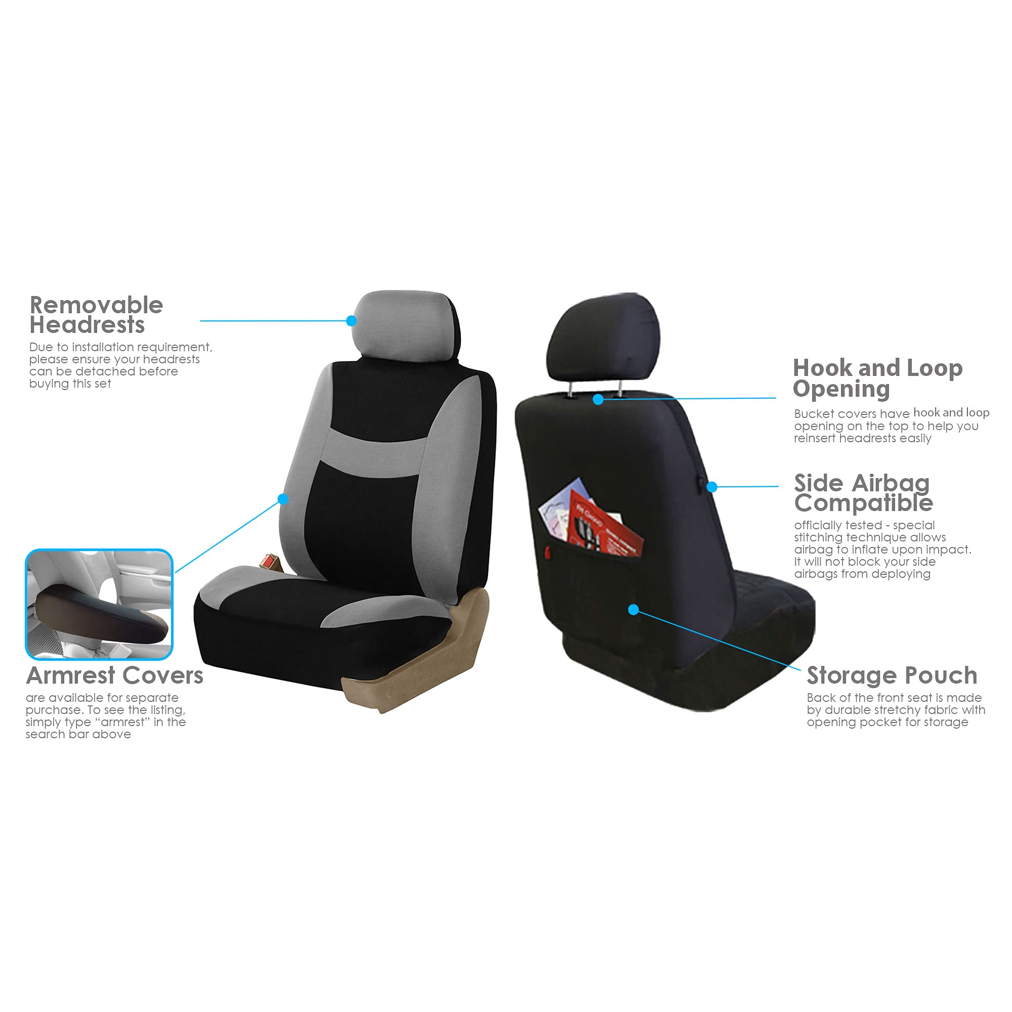 π[STUNNING DESIGN] Enhance the look of your car interior with the classic yet stylish designs of FH Group's cloth car seat covers. We offer a full set of car seat covers for women, for men, and everyone!