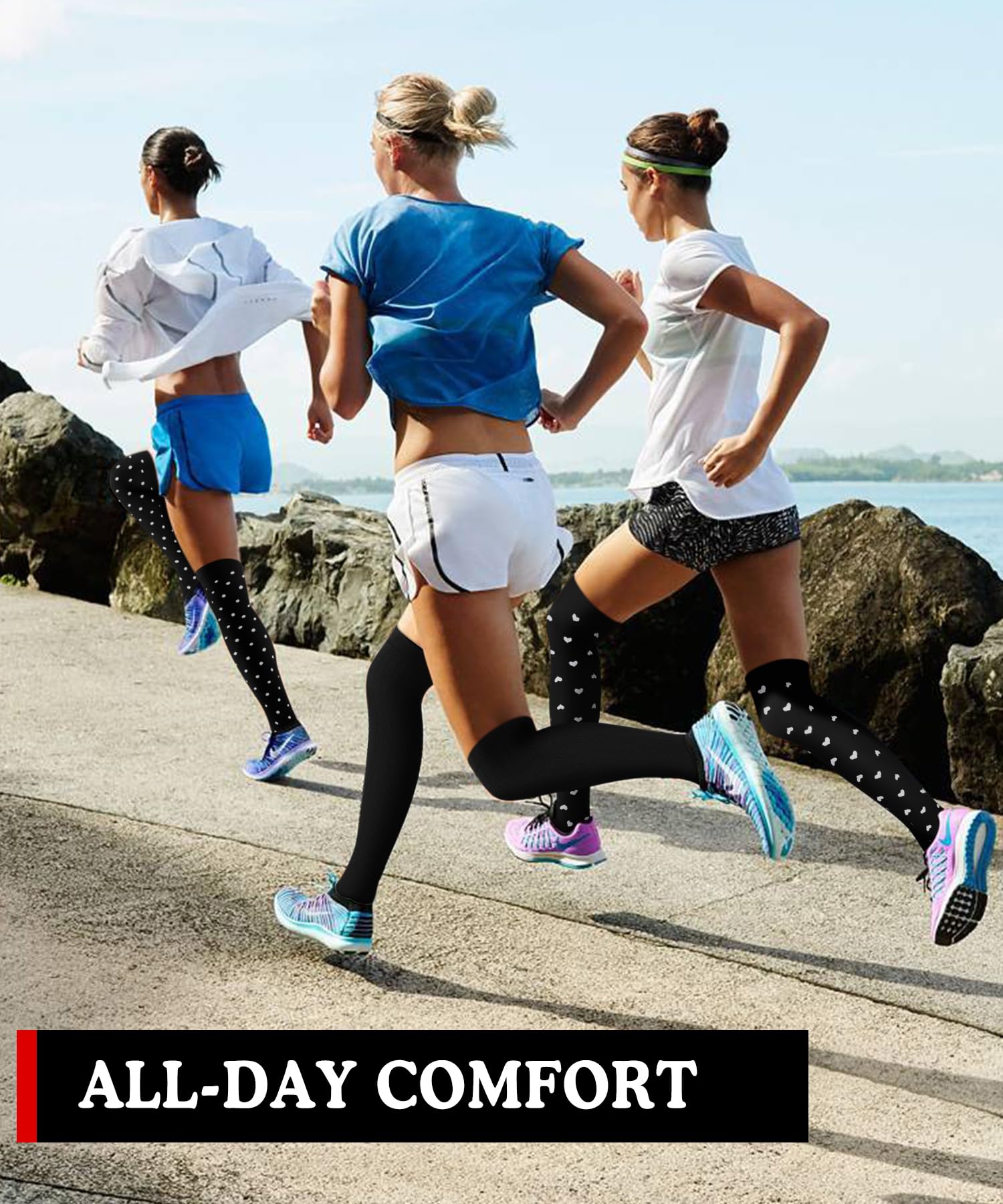 🆕【ENERGIZE YOUR LEGS】-- Compression socks have been shown to help decrease swelling and pain in the legs and ankles. Graduated compressions' whole purpose is to increase circulation, thus improving energy levels in the body. Another benefit of improving circulation is decreasing swelling and fluid retention. Increased circulation decreases swelling and increases blood flow, this reduces the feeling of heavy and achy legs.