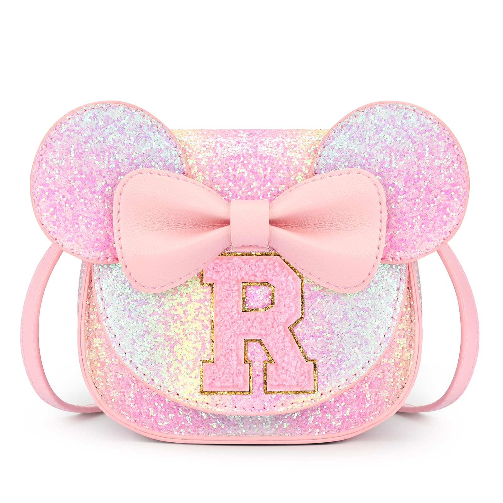Cute Shape: Patched with a letter,This little girl purse would be a personalized birthday gifts for 6 year old girls or under. Kids would love its mini mouse ears and bow