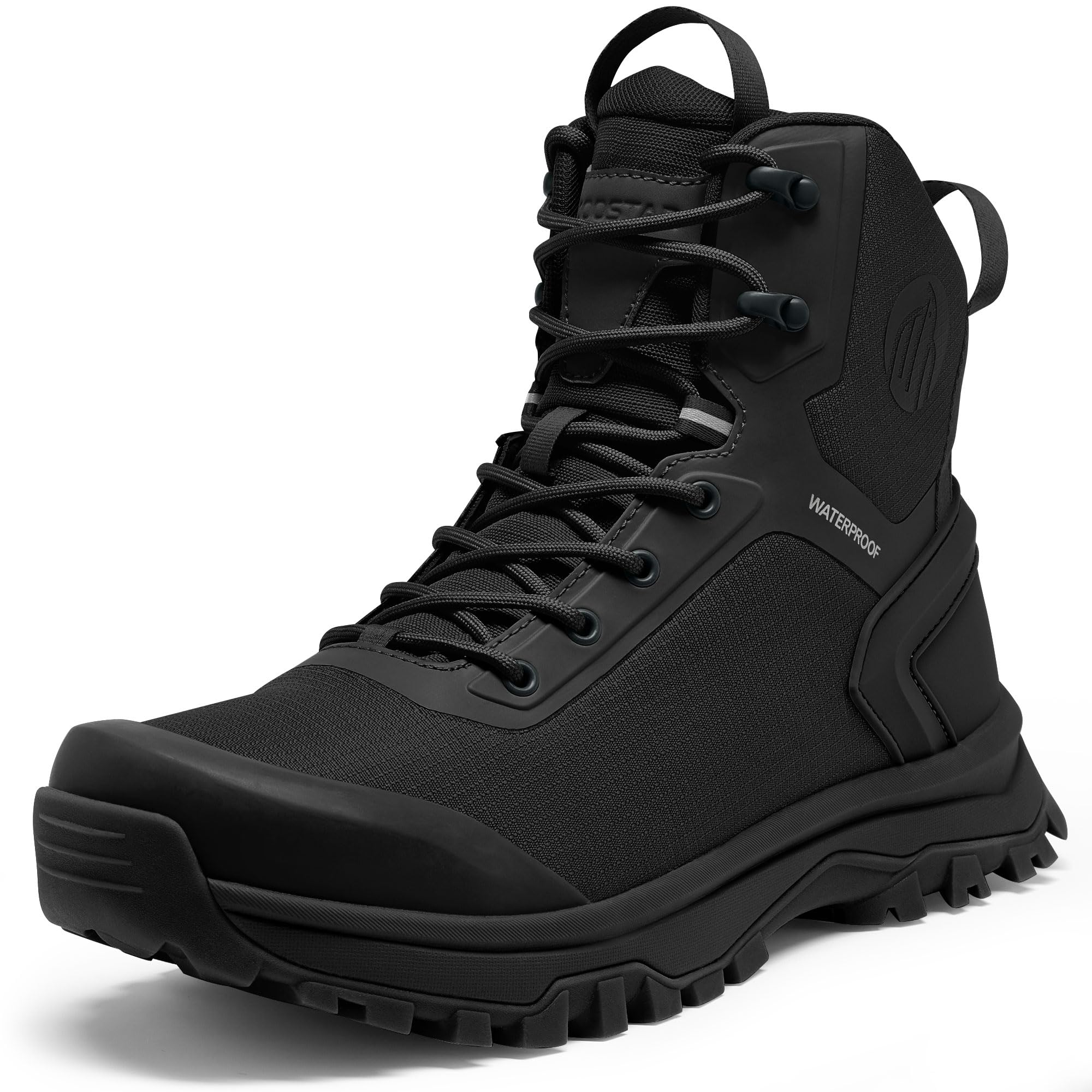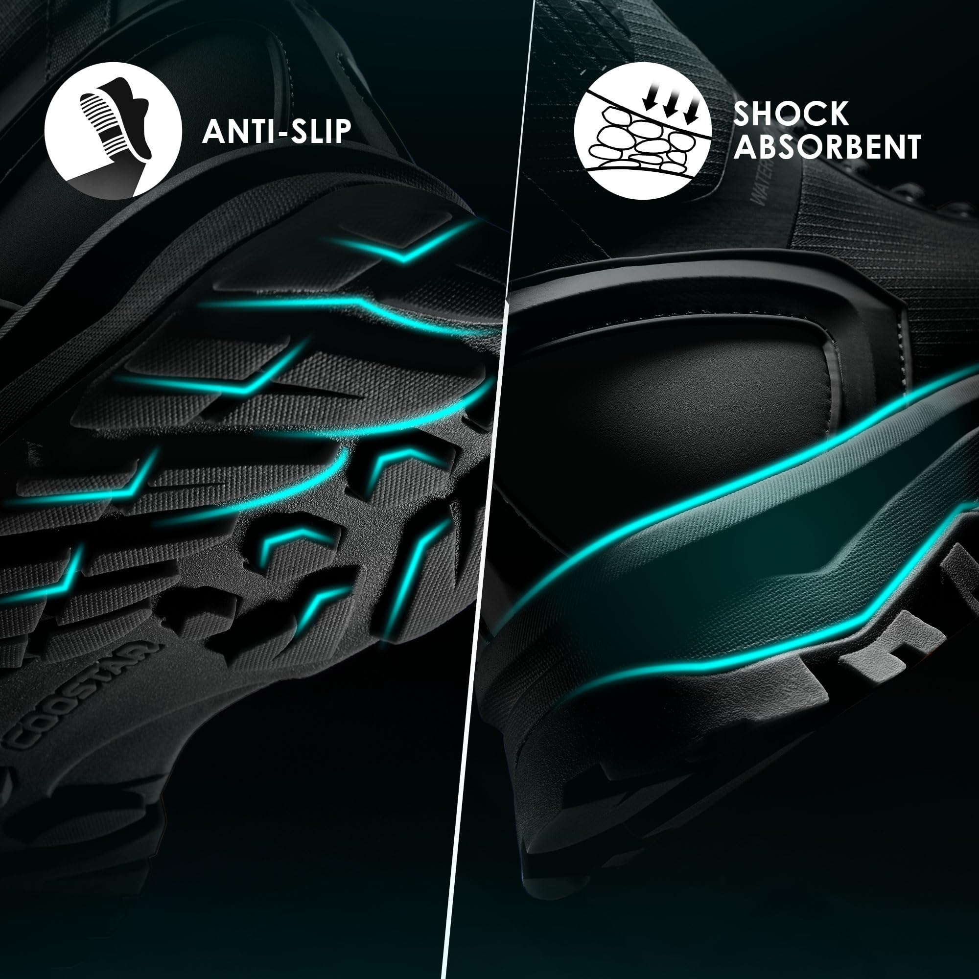 Waterproof & Comfortabla: The tactical boots for men have waterproof uppers, seamless construction, the mesh materials are breathable while offering good repelling of falling water (not submersible obviously). they're very comfortable and have modern tactical design.