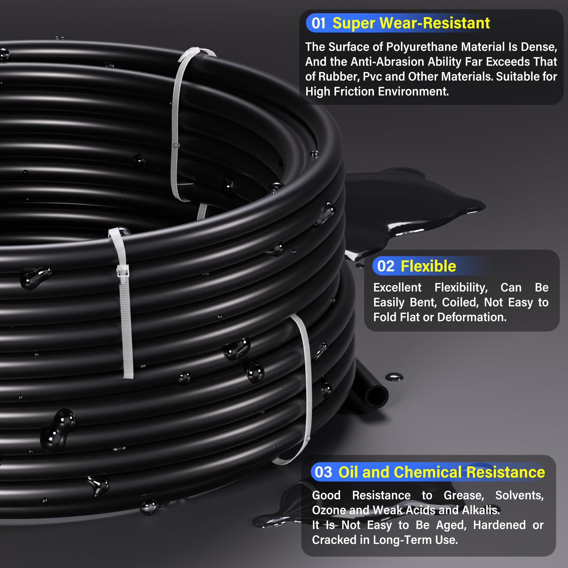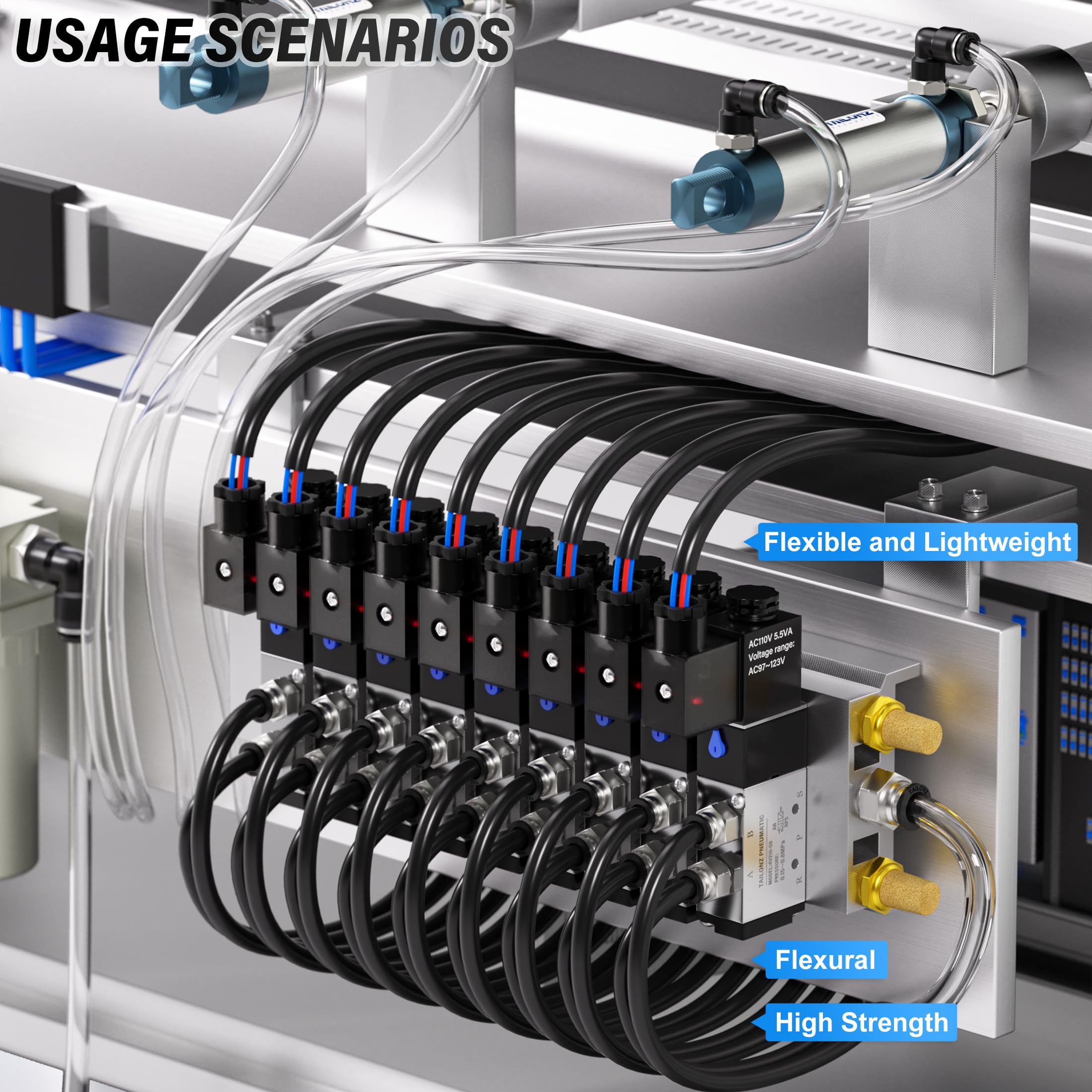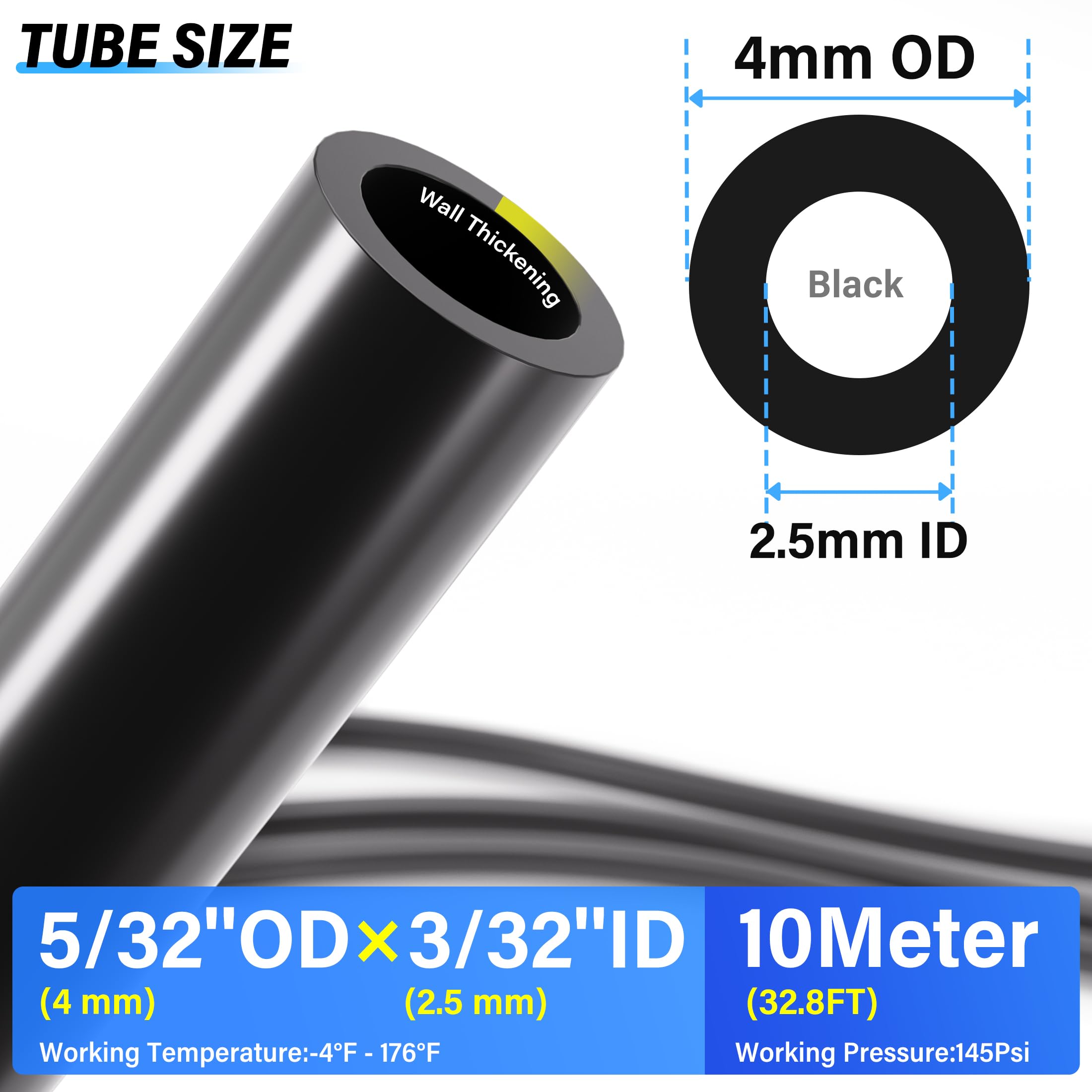 TAILONZ PNEUMATIC Black 4MM or 5/32 Inch OD 10 Meter 32.8ft PU Polyurethane Air Tubing Kit Pipe Hose Air Line Tubing Air Hose Fittings Push to Connect Fittings(29PCS)