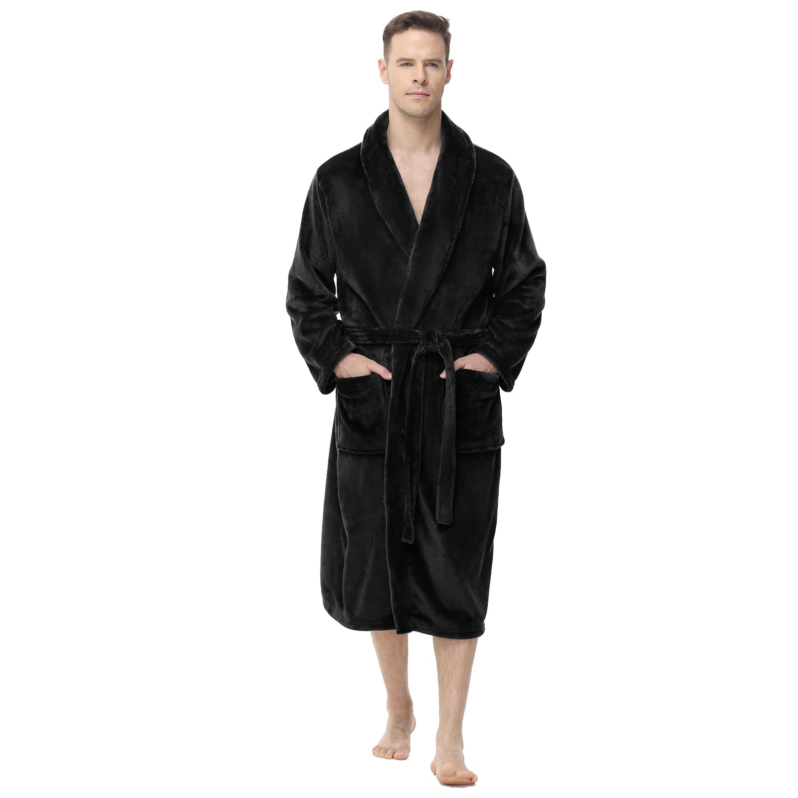 【SOFT FLEECE MENS ROBE】Made of fleece, this men's robe is super soft and cozy, warm and lightweight, perfect for lounging and relaxation at home and a great choice to wear after a tiring day at work.
