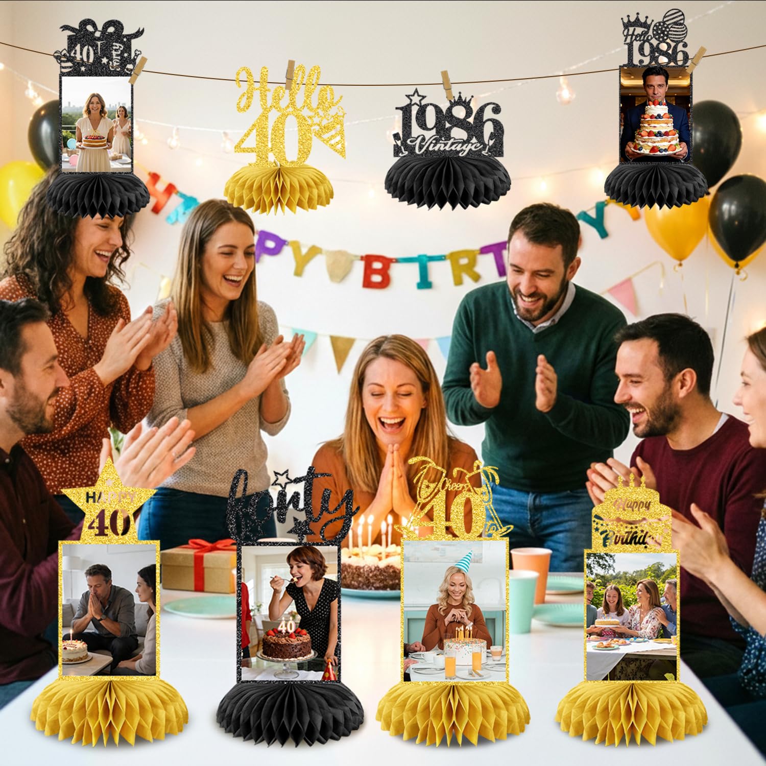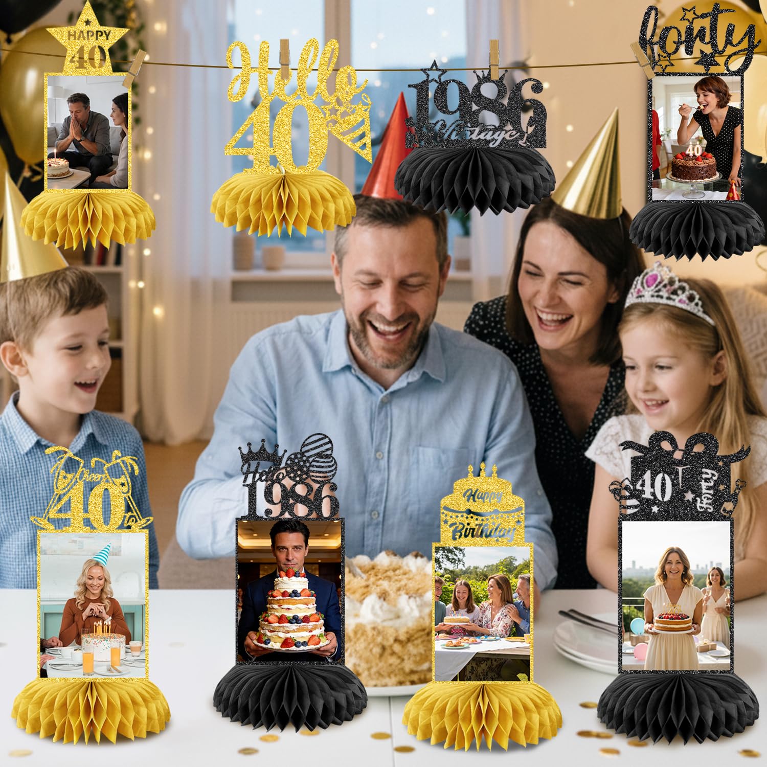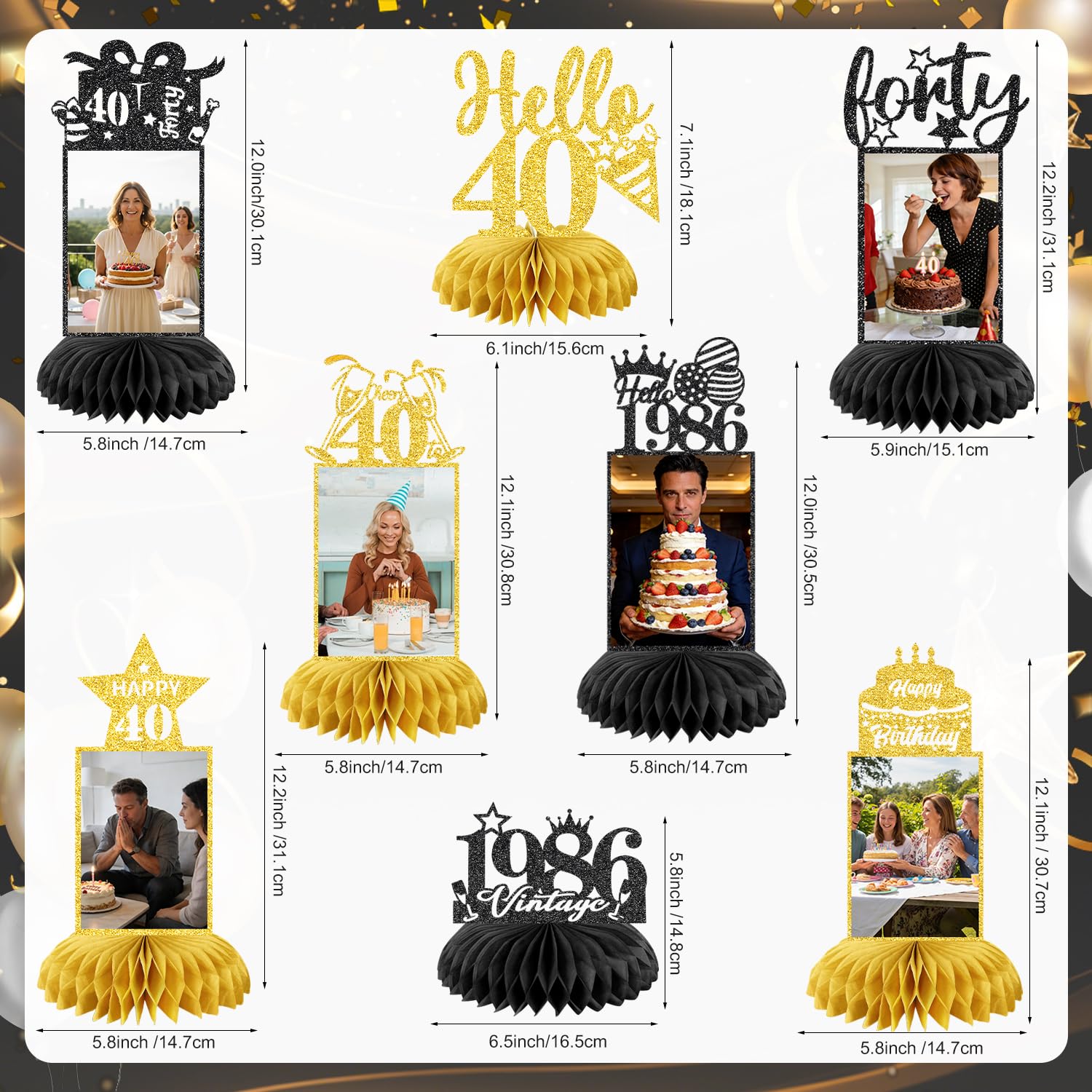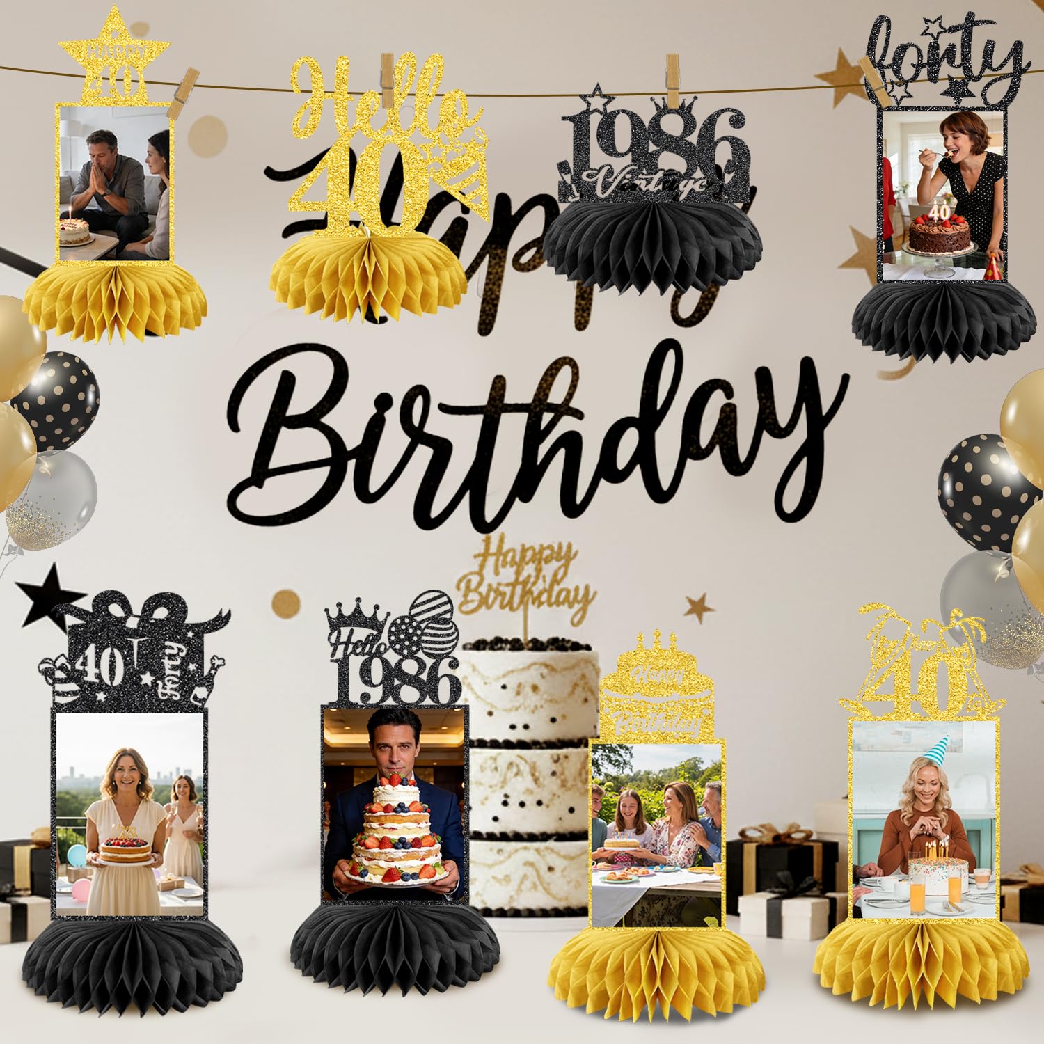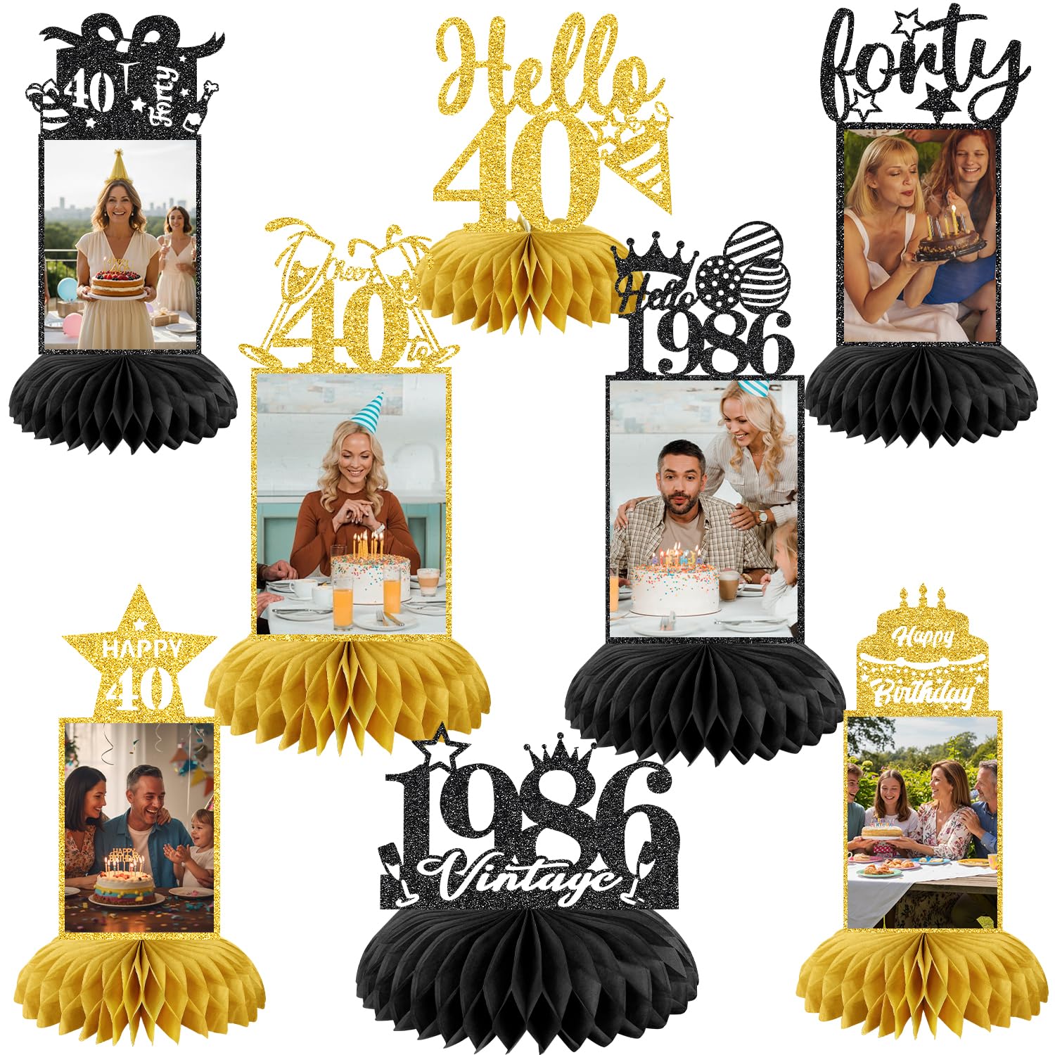 💖40th BIRTHDAY PACKAGE INCLUDES: Our 40th birthday decorations including 8 patterned cardboard and 16 paper honeycombs. These decorations exquisitely designed with interesting birthday elements. It is very suitable as a decoration for your 40th birthday party decorations, you can place it on the table or hang it with a clip