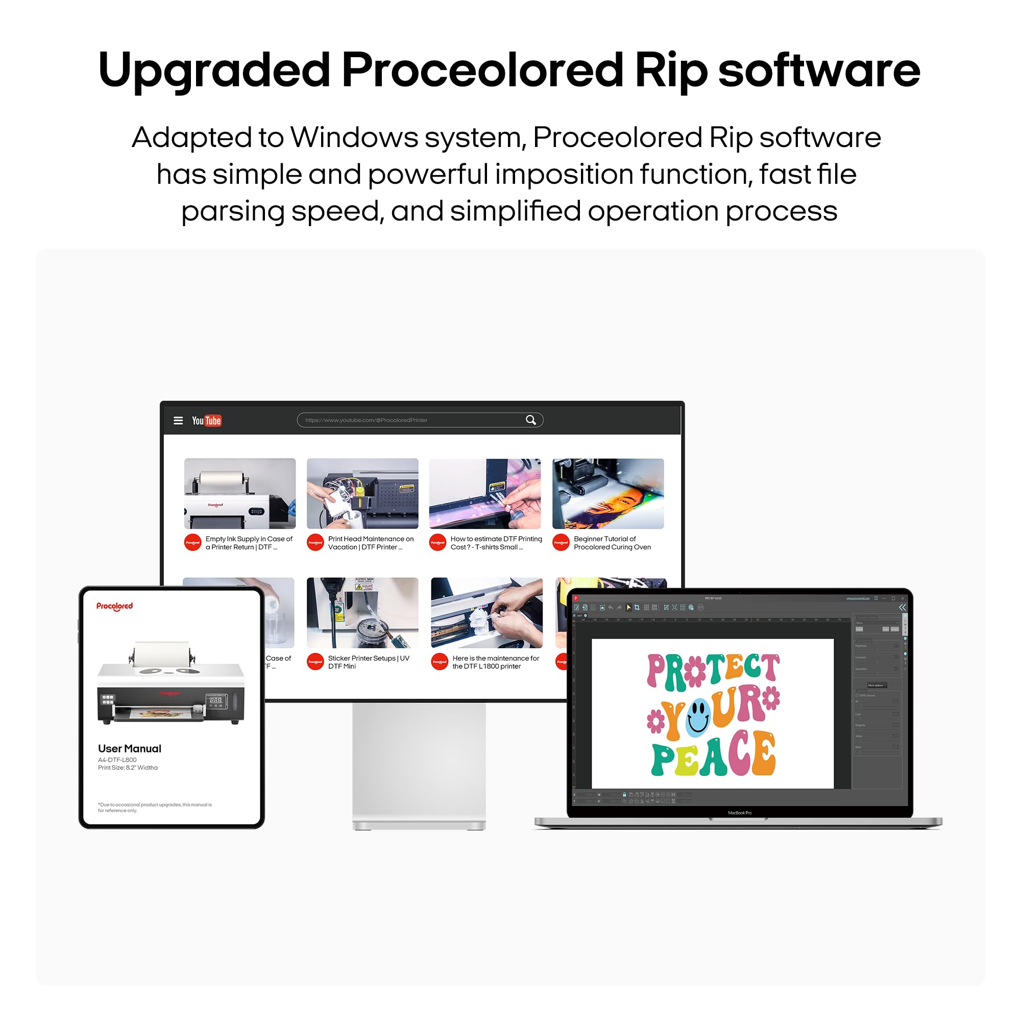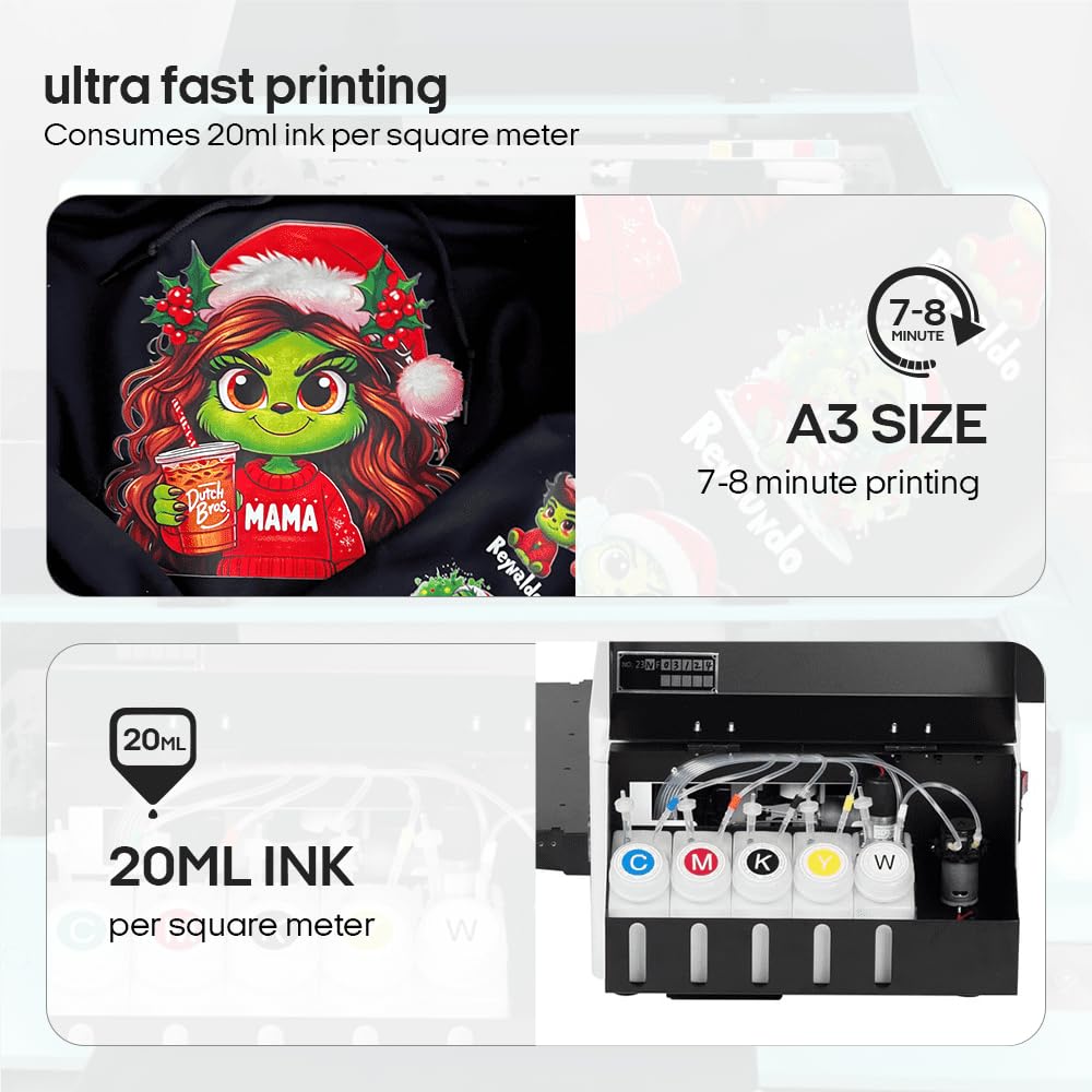 Superior Print Quality: Experience unmatched precision with our A3 DTF Printer's ultra-clear 1440x1440dpi resolution. From vibrant hues to intricate details, every print is a masterpiece. With six-color printing, achieve stunning color accuracy and smooth gradients.Software support for Windows 7/10/11