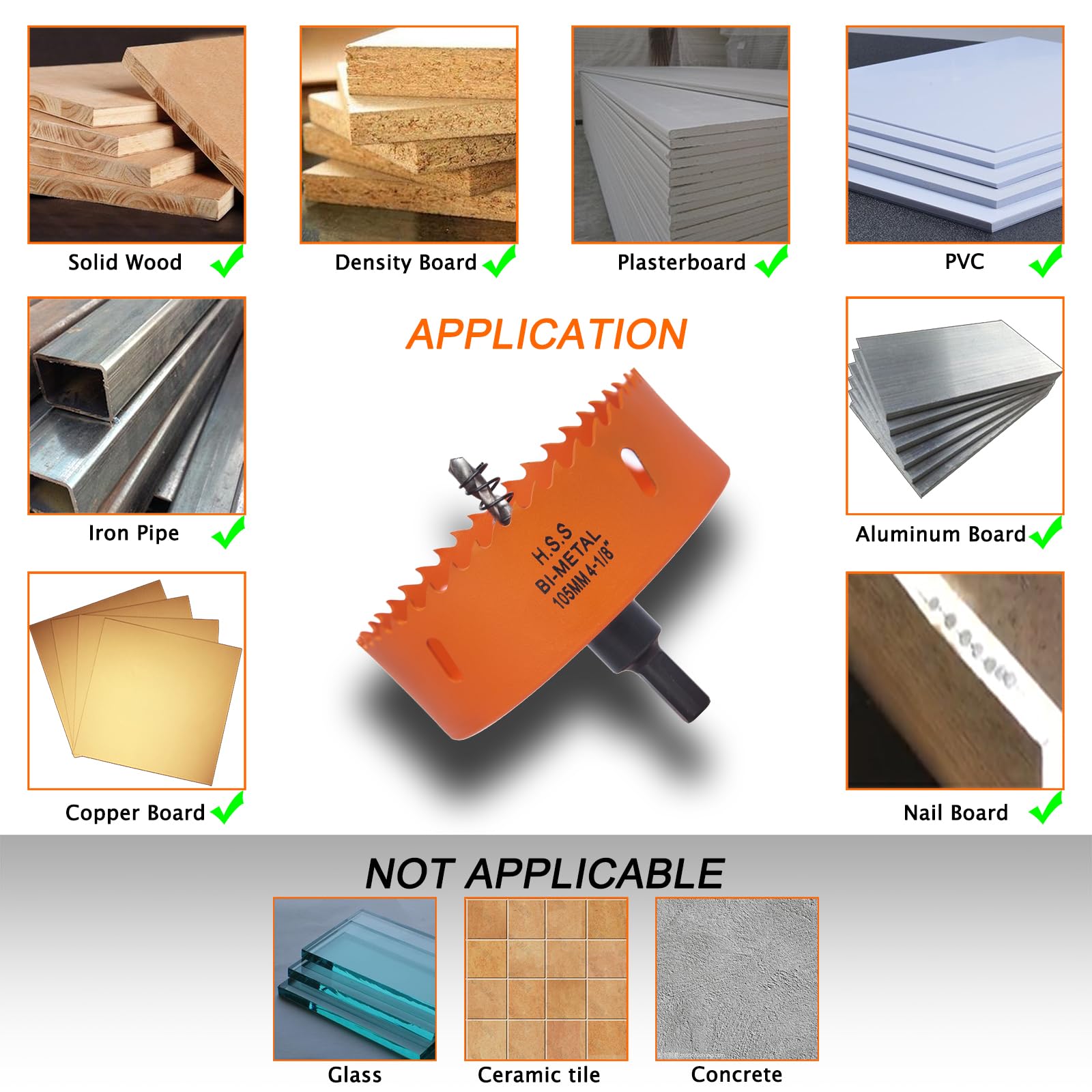Attention: The hole saw can't drill hole in glass ceramic concrete; Adding coolant or water is even better when drilling metal