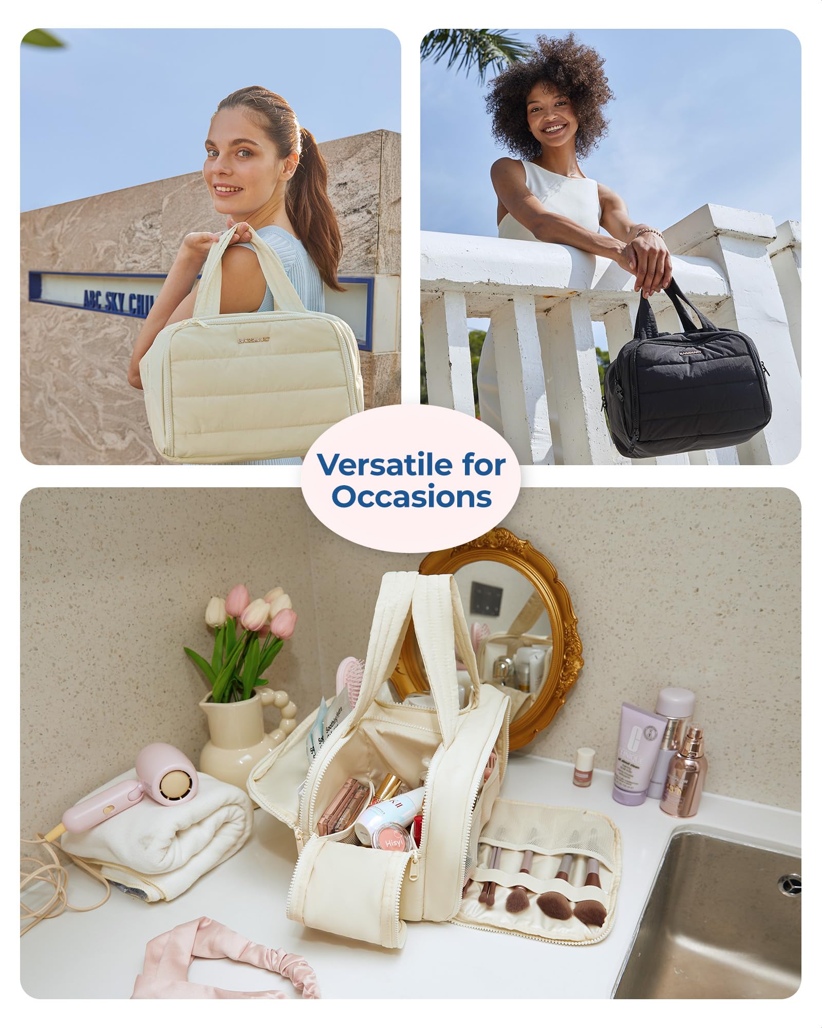 Ultra Light and Soft Materials: Made of soft and luxurious Taslan fabric. This puffer toiletry bag feels like cotton candy, giving people a relaxed and comfortable atmosphere. Also a reliable, functional, and fashionable makeup bag. Efinitely an ideal Christmas gift for yourself, your family, and your friend