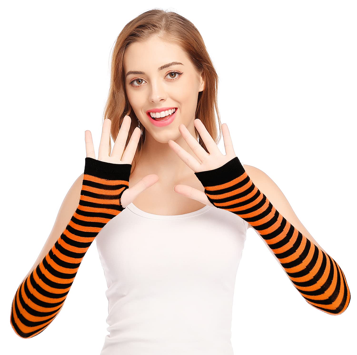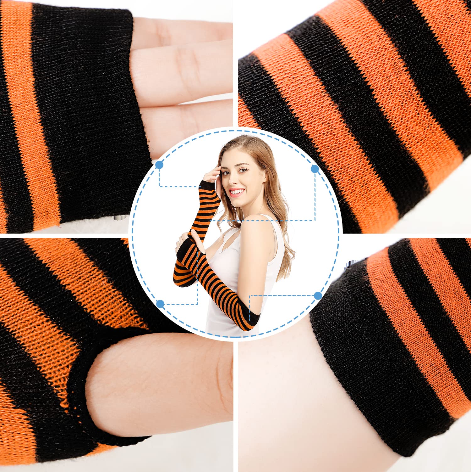 Fingerless and Thumb hole design - The long fingerless gloves have a hole in the thumb, which is not only warm, but also very convenient and practical. Fingerless design made you easy and flexible to access to your computer and mobile phone. The thumb holes are aligned with no frayed edges, they are stitching well, won't easily lose the shapes.