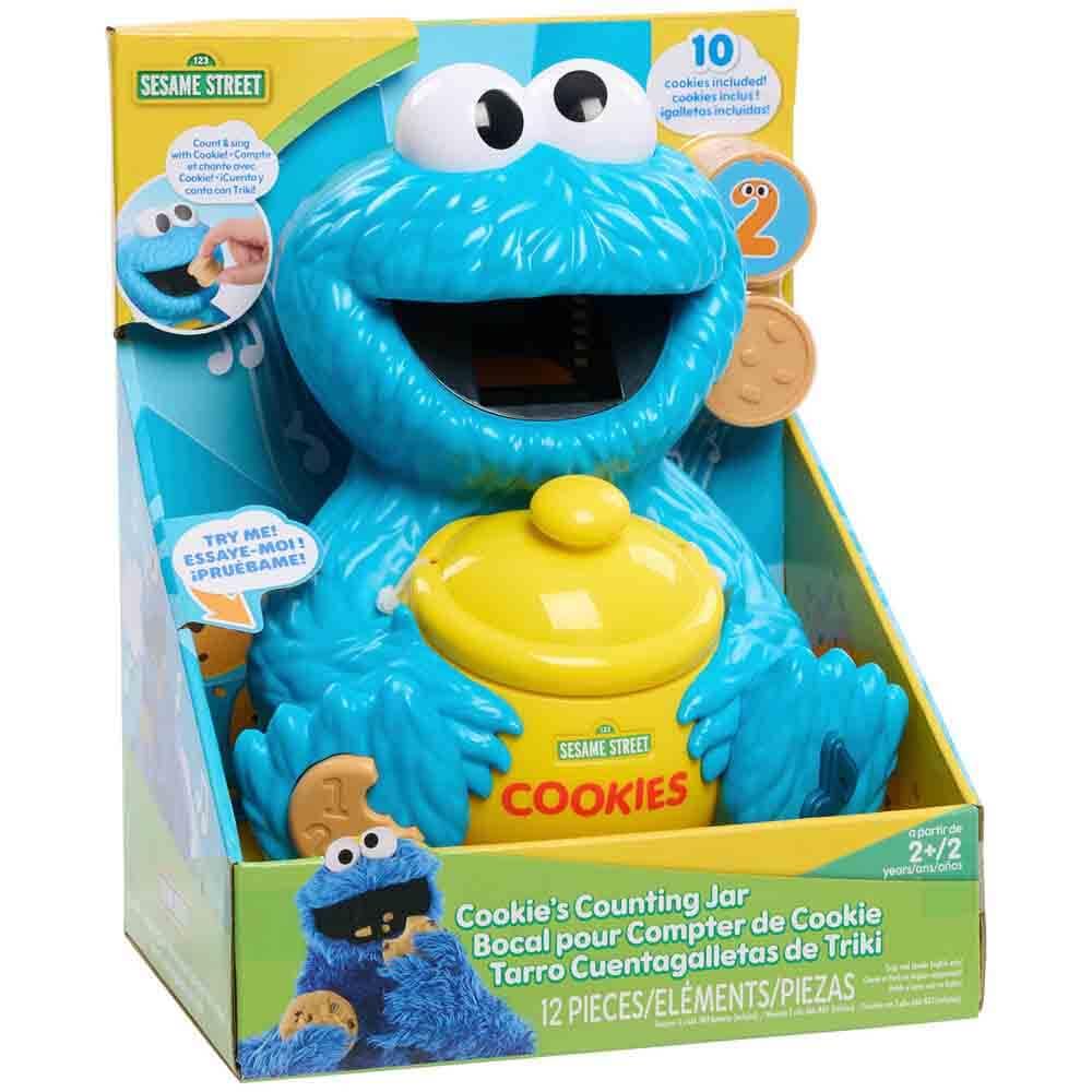 Designed for Little Hands: Cookie's Counting Jar is 7.65 inches tall and comes with 10 chunky cookies that toddlers can grab and feed to Cookie Monster. Each play cookie is labeled with a number that matches the number of chocolate chips on the cookie.