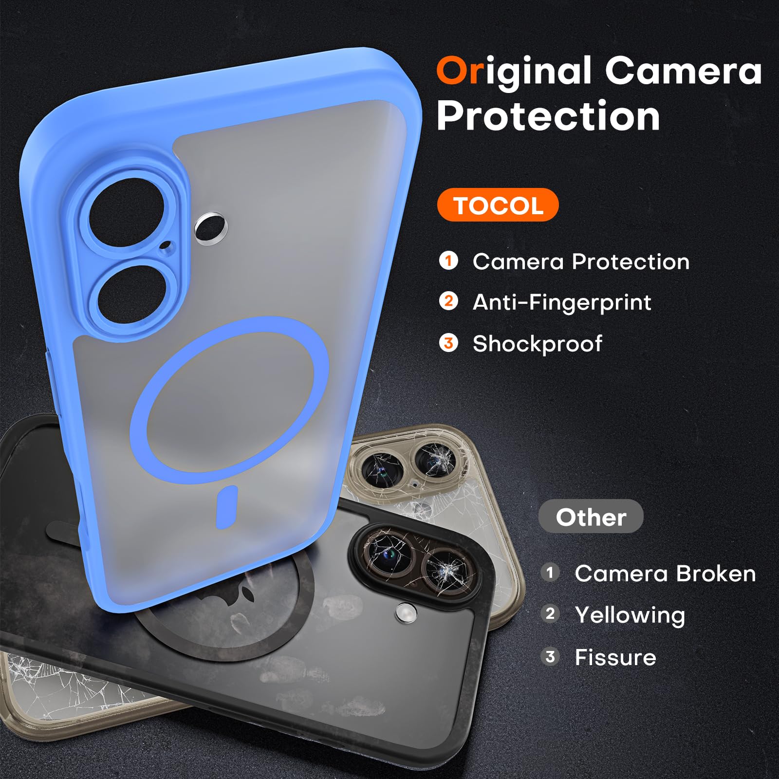 [Crafted for Camera Security]: Unlike other phone case, the TOCOL case for iPhone 16 upgrades the camera surround protection, the camera cover is part of the case and not a separate piece. The camera frame is 0.8mm higher than the camera lens, which can protect your most precious camera lens from scratches and bumps and will not affect the quality of the photo.