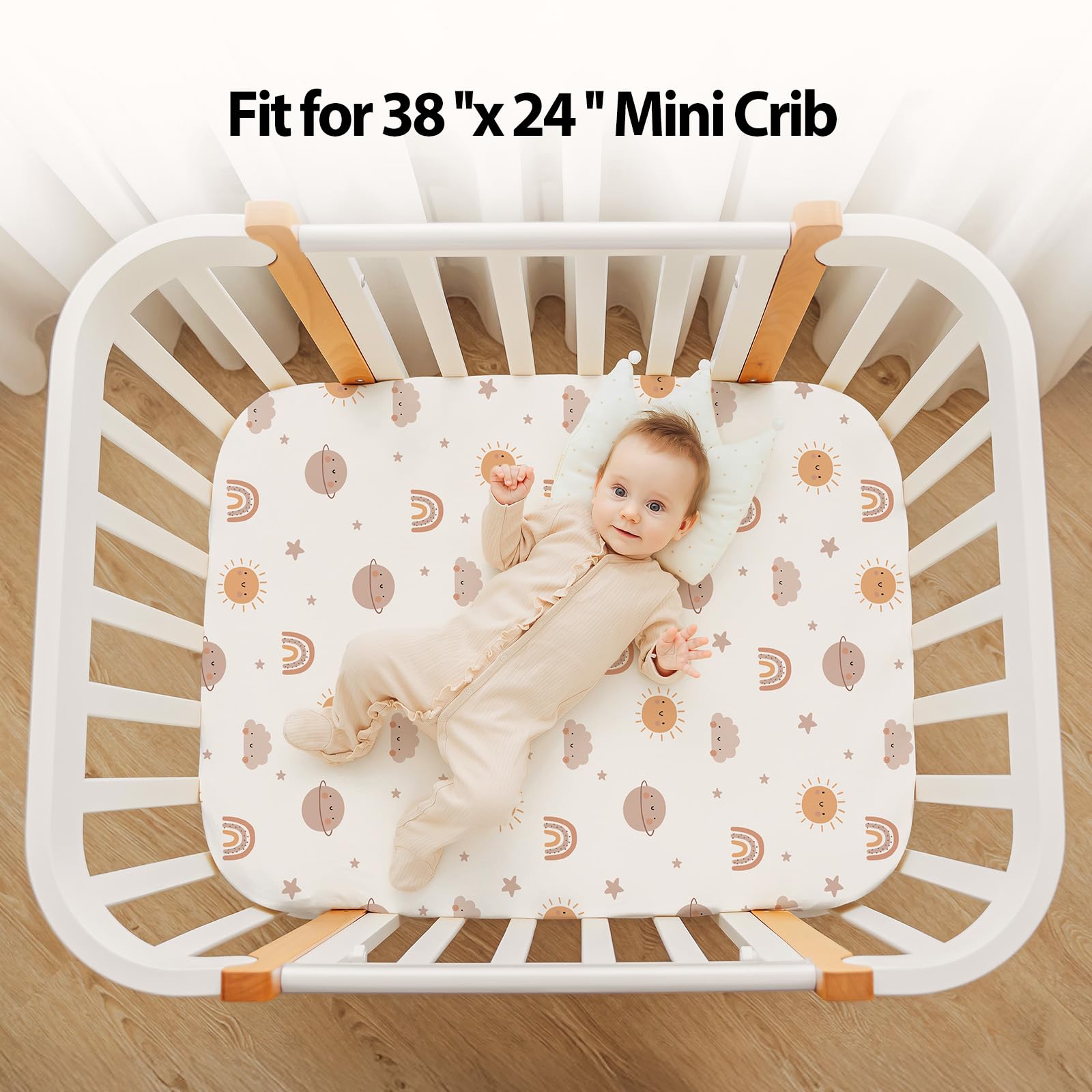 Nursery Essentials: Choose from a variety of stylish mini crib mattress sheets, featuring cute prints and bright colors to bring life to your nursery. You can create a cozy, warm, and harmonious sleep space that nurtures your childβs dreams and growth.