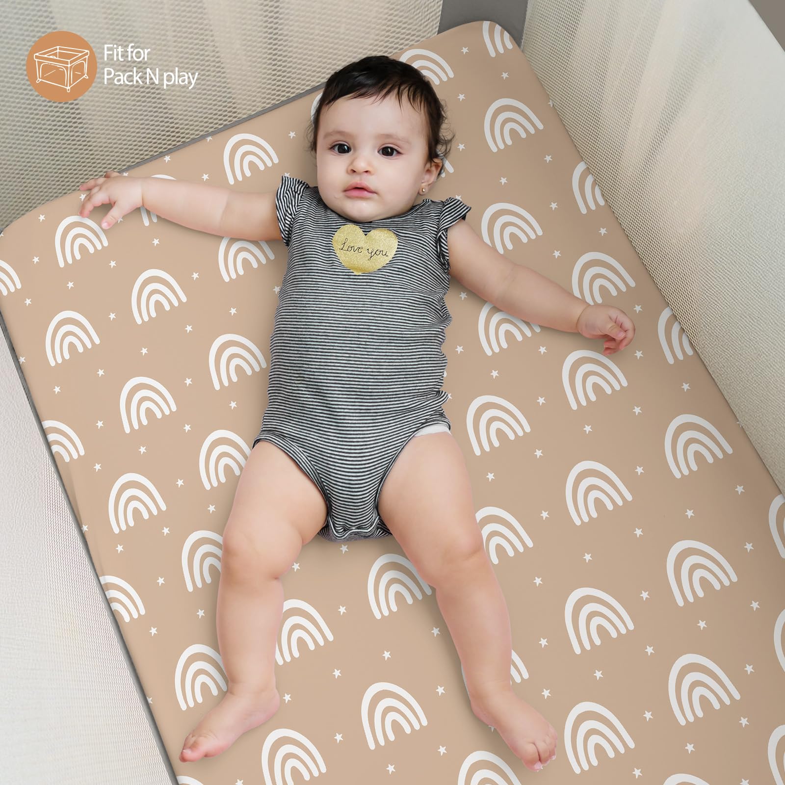Soft & Skin-friendly Fabric: Crafted from premium microfiber with advanced knitting techniques, our pack and play mattress sheets are ultra-soft and gentle, perfect for even the most delicate and sensitive skin. Designed to keep your baby comfortable and relaxed, they promote sound sleep and support healthy growth.