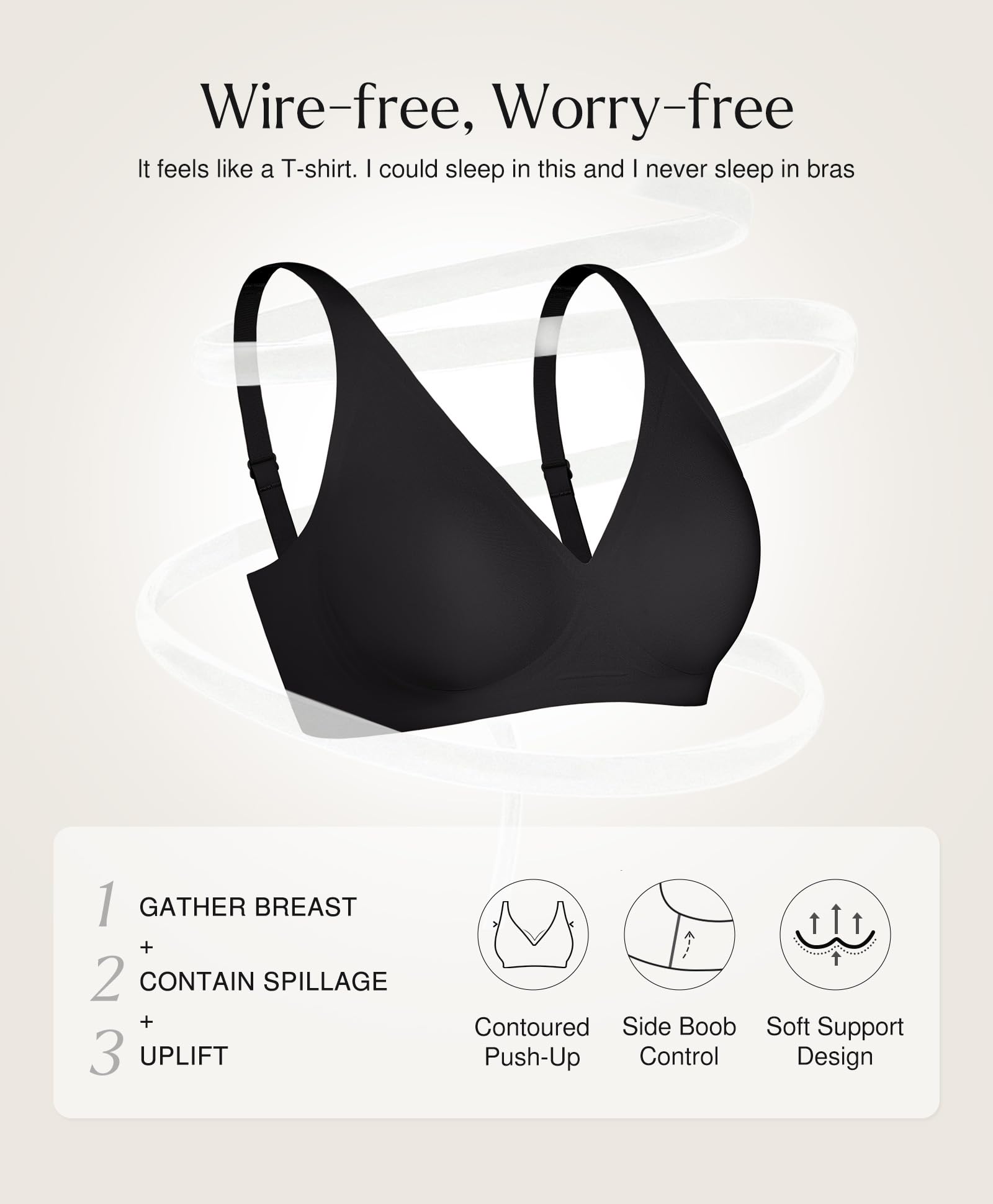 No Underwire, Comfortable: Wireless bras for women no underwire, innovative W-shaped soft seamless bra support is used to replace traditional underwire, which firmly supports the breast shape without oppression, and push up bra fits all day without displacement