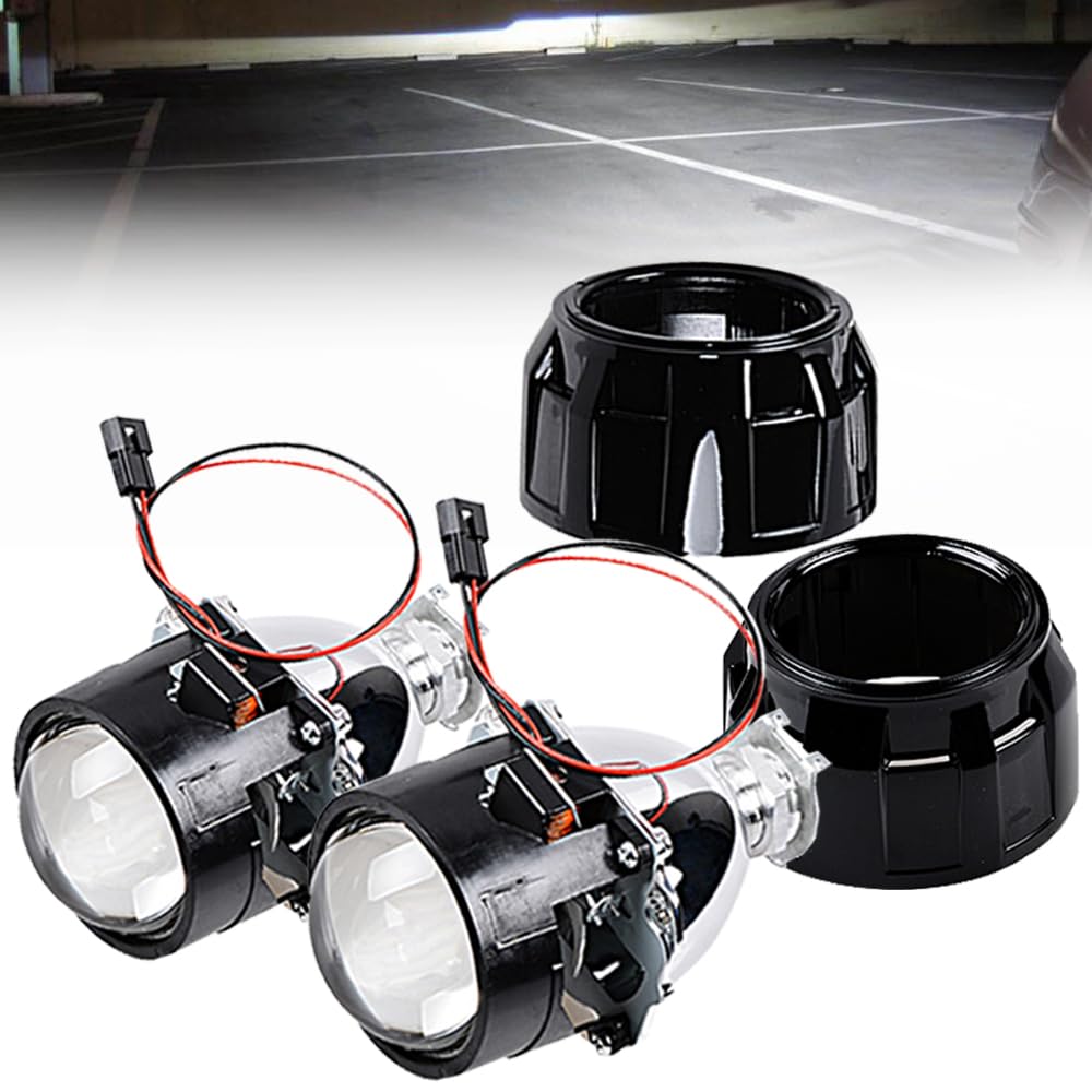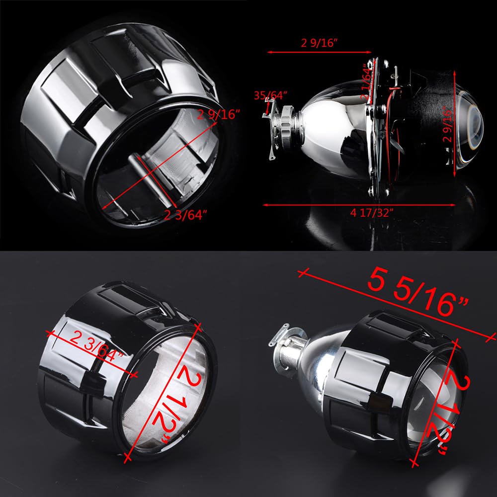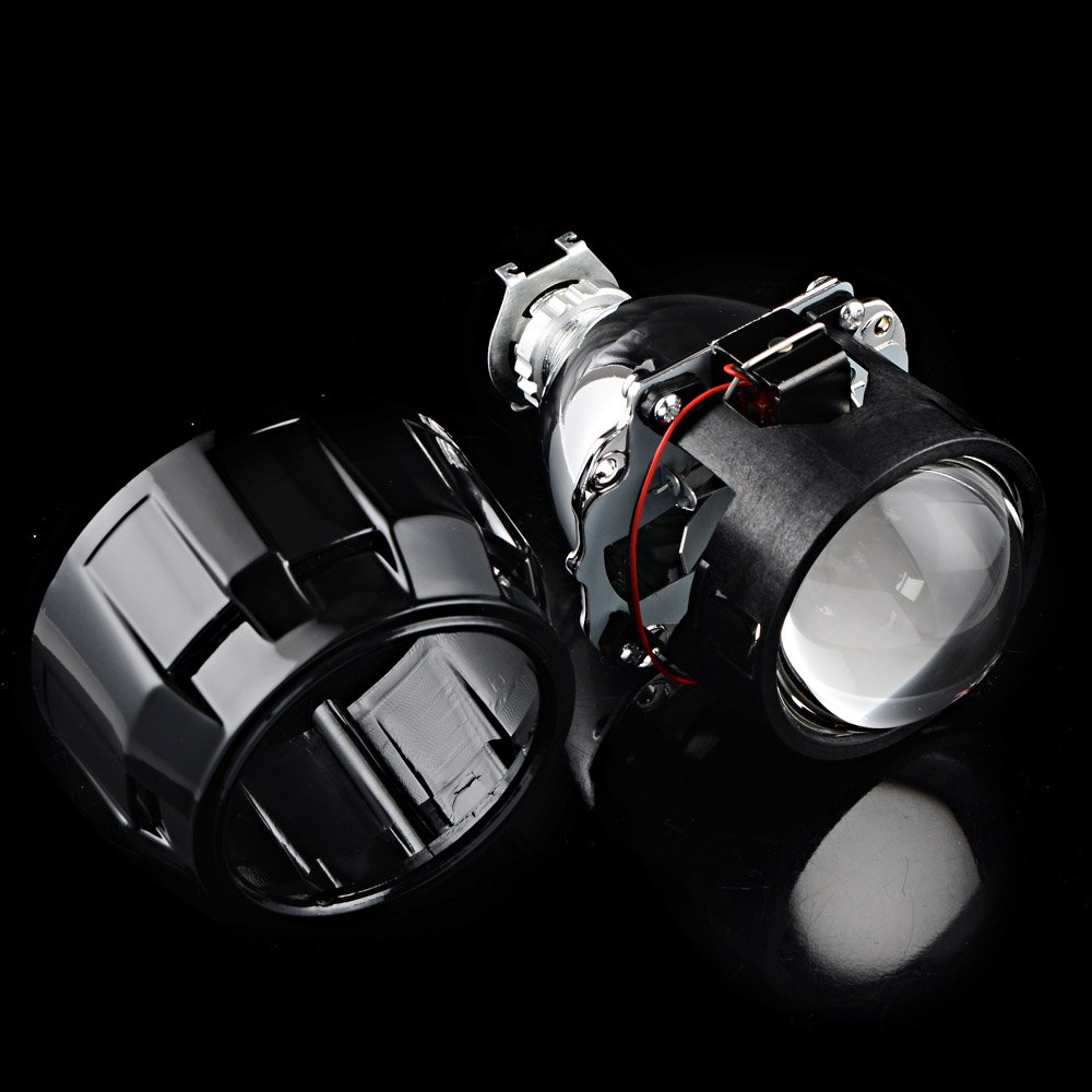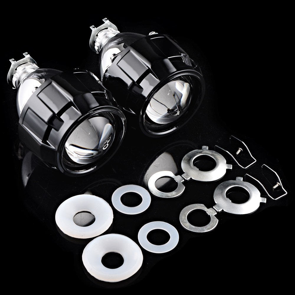[PACKAGE CONTENT] 2PCS Mini Bi-xenon projector Lens (Low/High Beams), 2PCS Shrouds, Set of Installation Accessories.