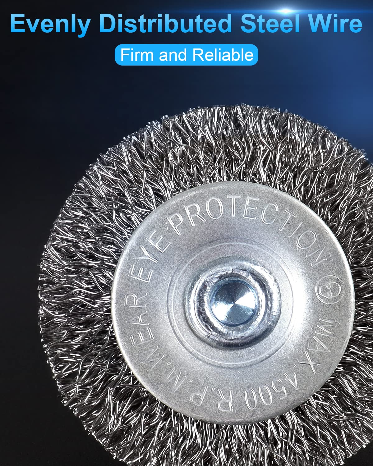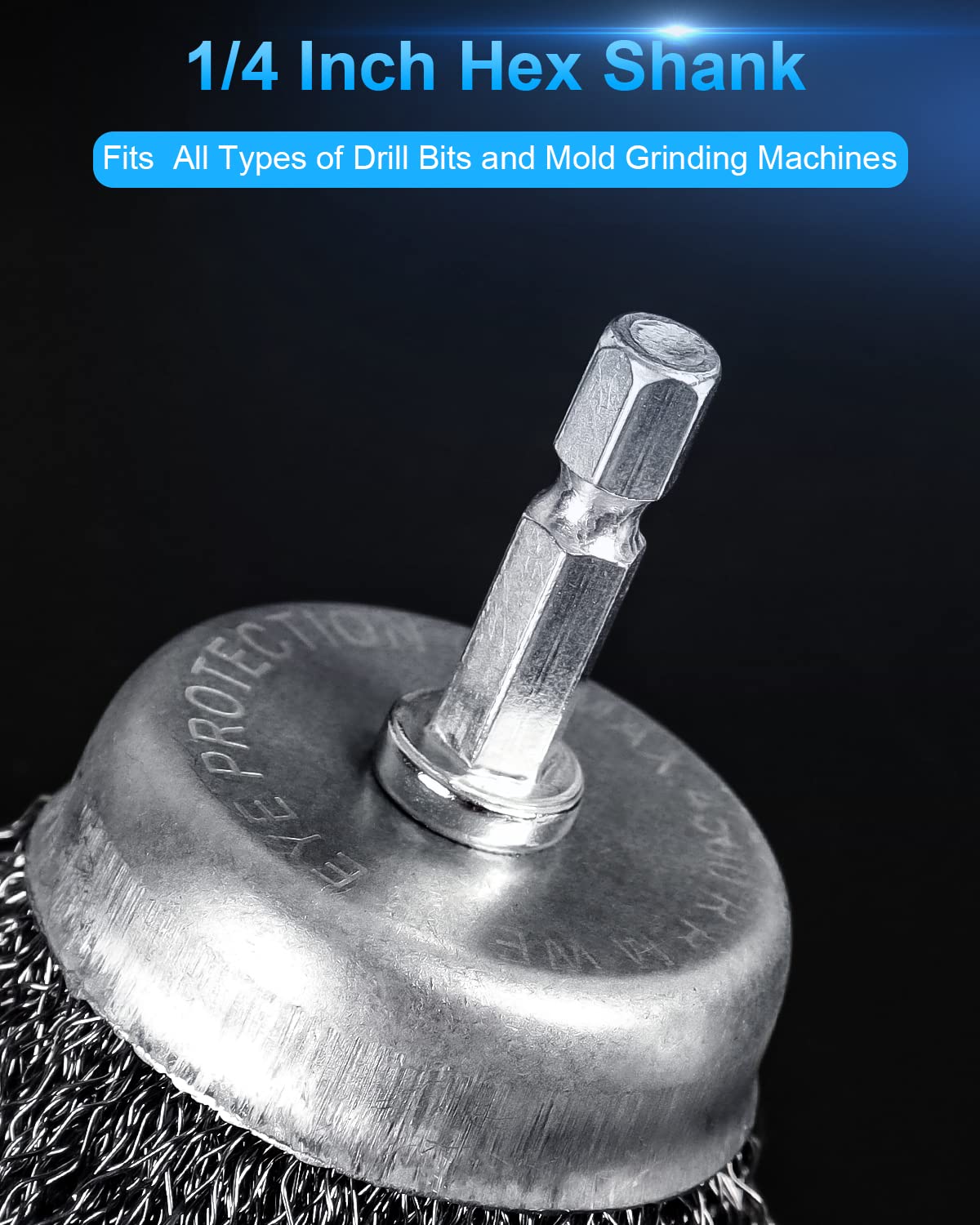 6 Pack Wire Brush Set: This package includes: 2 pcs carbon steel cup brush, 2 pcs wheel brush, 2 pcs pen brush with 1/4 inch hex shank. Hardened steel wire long maximum 4500 RPM.