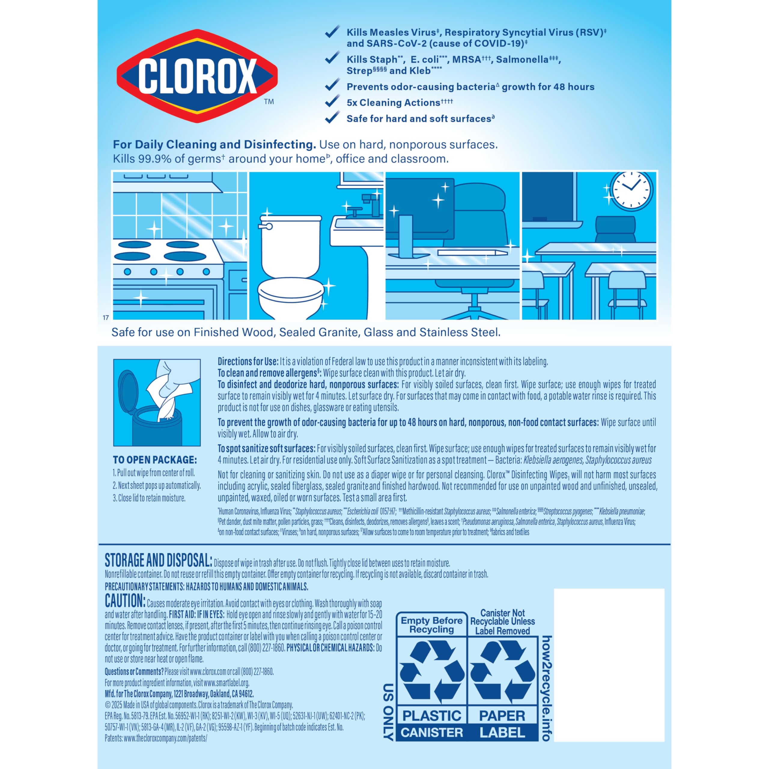 NEW SPARKLING SCENTS: Great for daily cleaning, Clorox Disinfecting Cleaning Wipes deliver an effective clean and sparkling scent with every wipe; packaging may vary