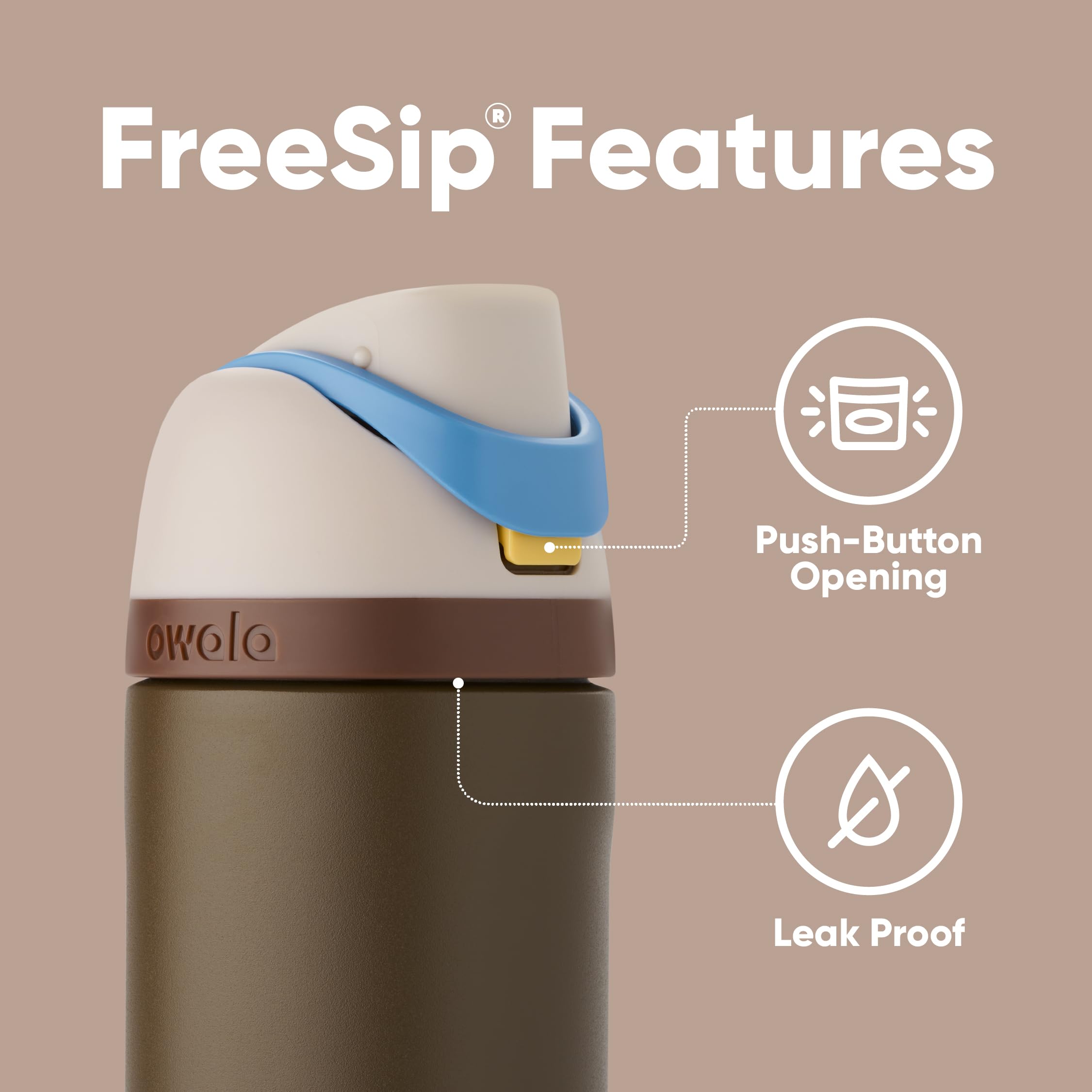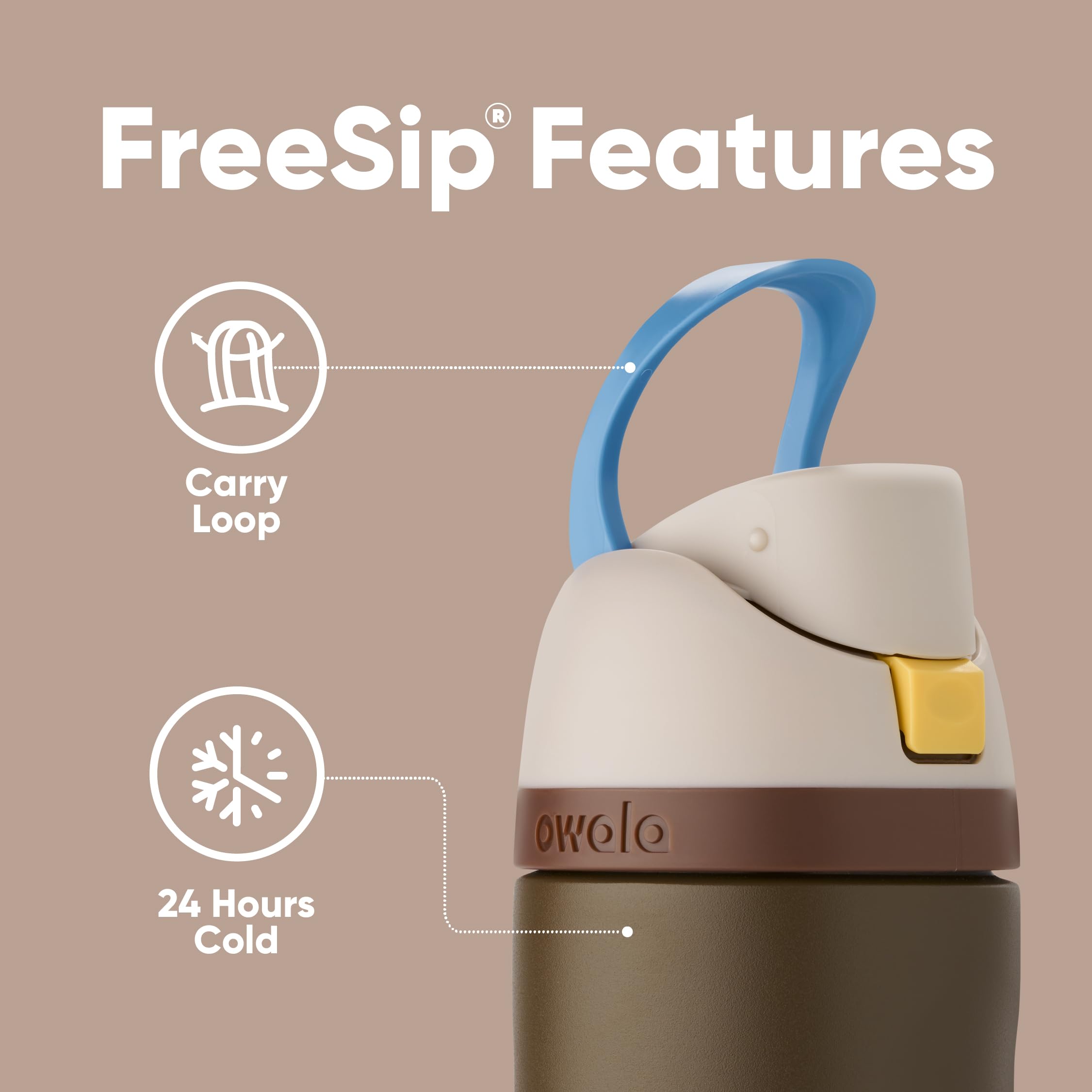The Owala FreeSip Insulated Stainless-Steel Water Bottle with Locking Push-Button Lid easily tackles every thirst. With a built-in, easy-clean straw and a wide-mouth opening, the FreeSip reusable bottle is designed for drinking two different ways: sipping upright through the straw or tilting back to swig from the wide-mouth spout opening. Add in a push-to-open lid and Star Wars themes, and staying hydrated has never been simpler—or more fun. Additional features include double-wall insulated stainless steel that keeps drinks cold up to 24 hours, a carry loop that doubles as a lock, a cup holder-friendly base, and a wide opening for easy cleaning and adding ice. The Owala FreeSip Insulated Stainless-Steel Water Bottle with Locking Push-Button Lid is available in five colors. Lid is dishwasher safe; hand wash cup. Not for use with hot liquids. Manufacturer’s limited lifetime warranty.