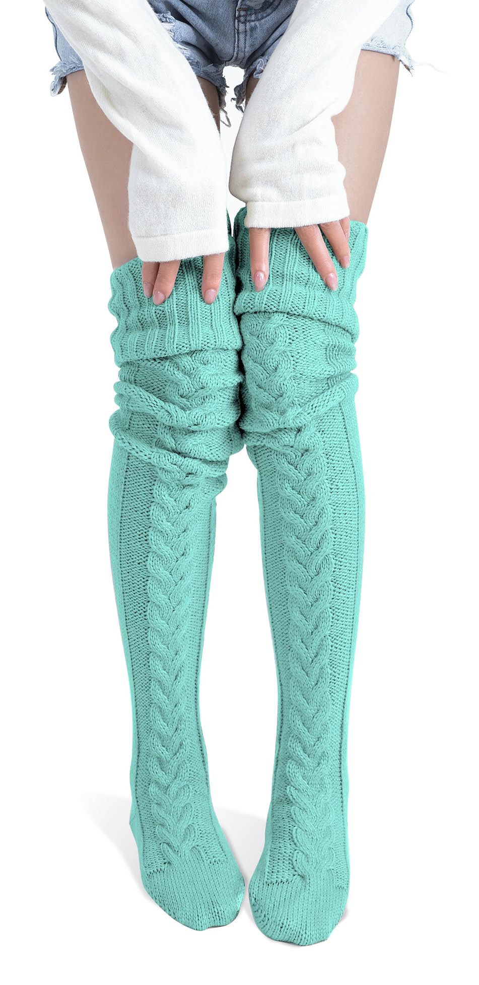 Proper Size: The total length of this warm leg socks is 100cm/39.37in, great elasticity make our socks fit most women. Our over the knee socks have a great benefit of great stretch, thus you can wear comfortably for all day! One size fits most women with medium or slim built.