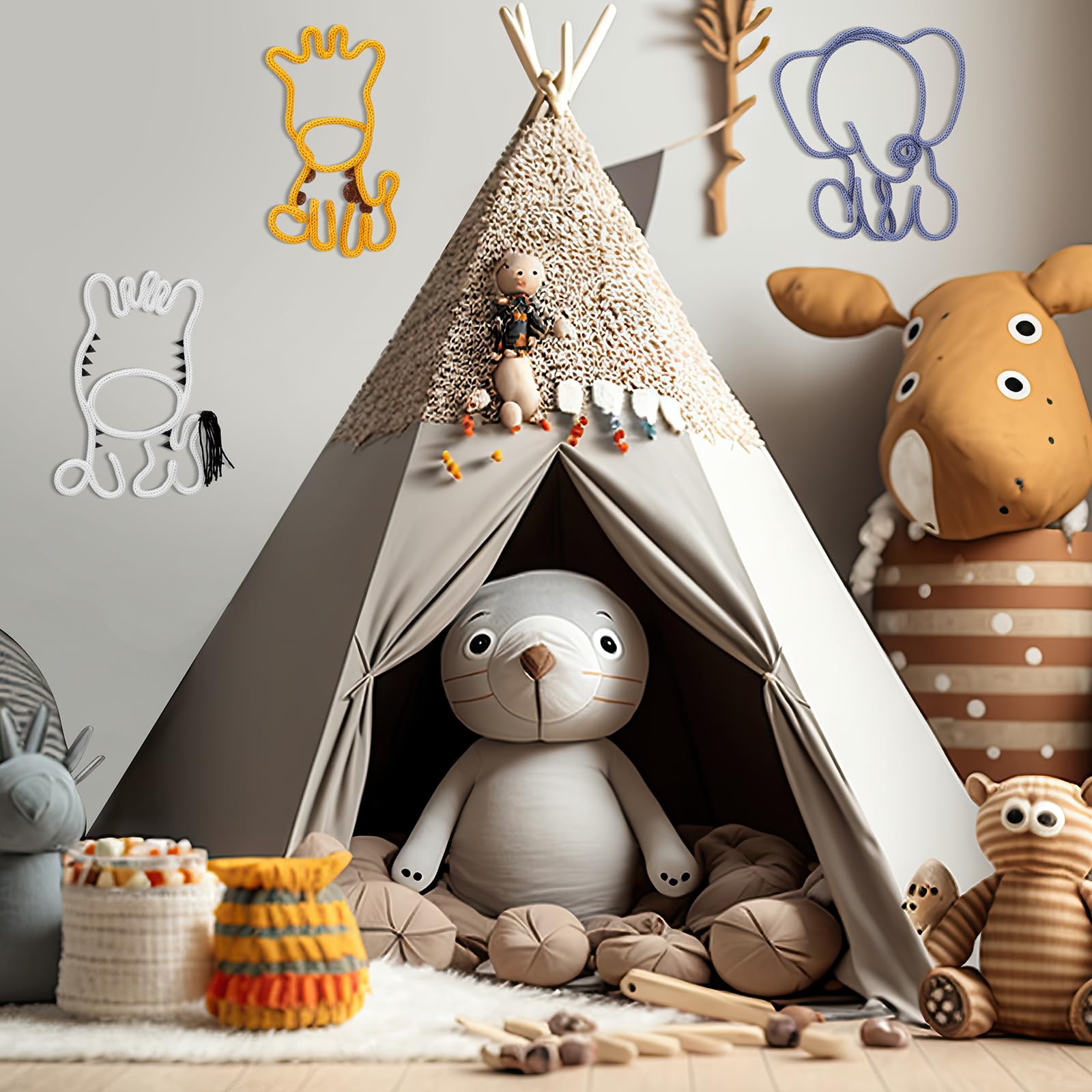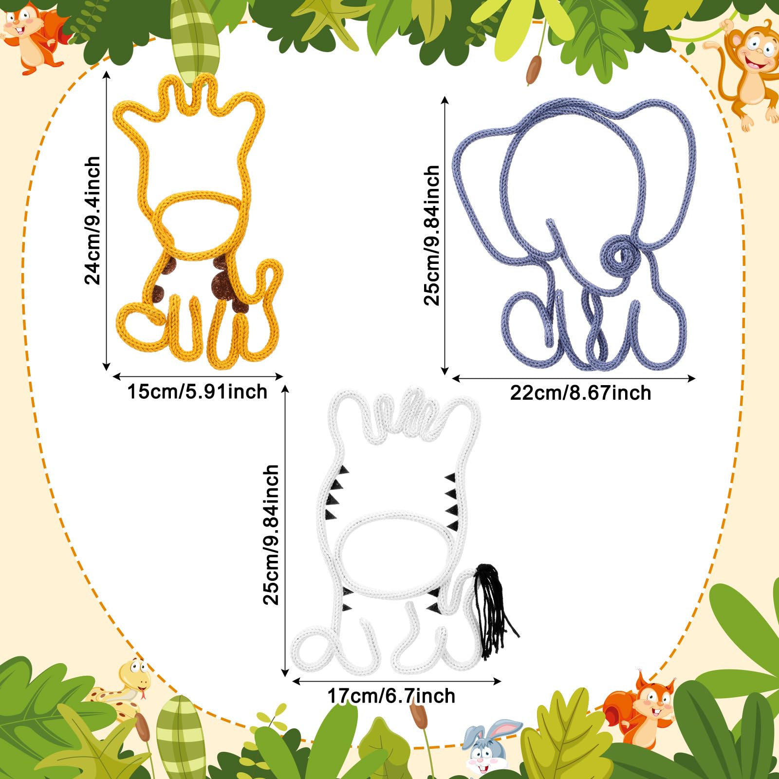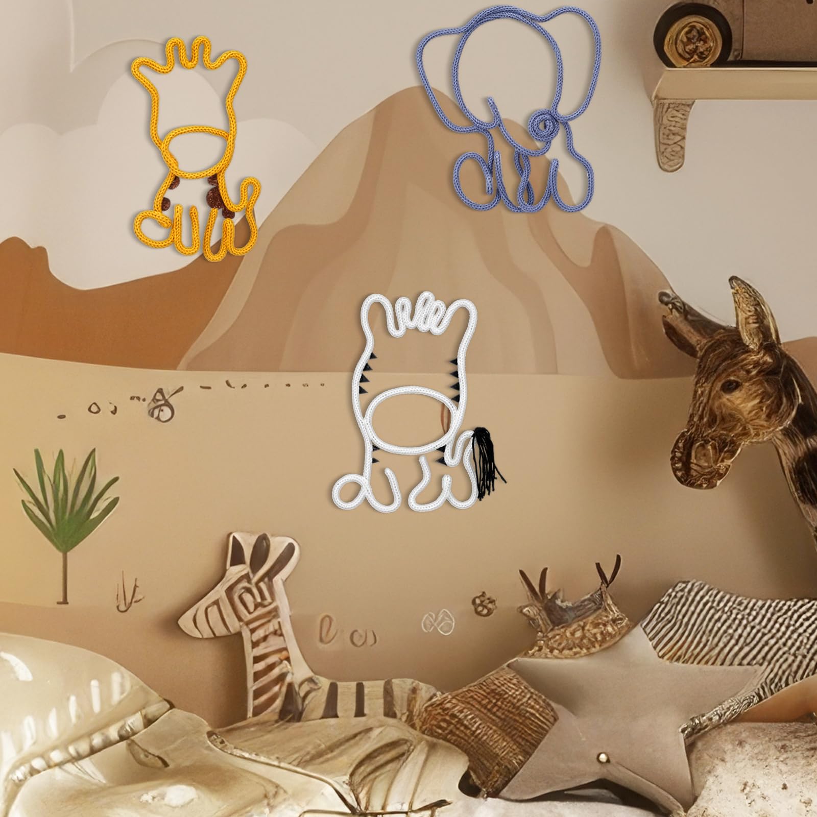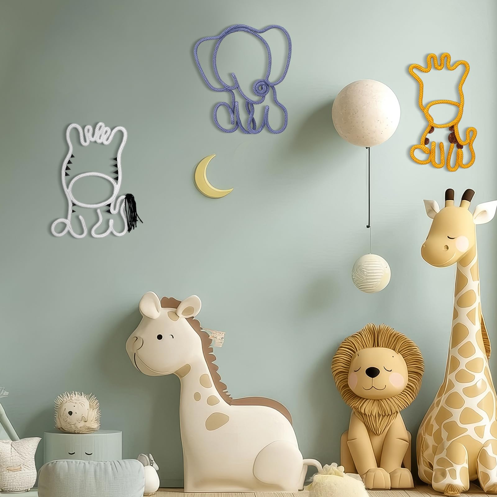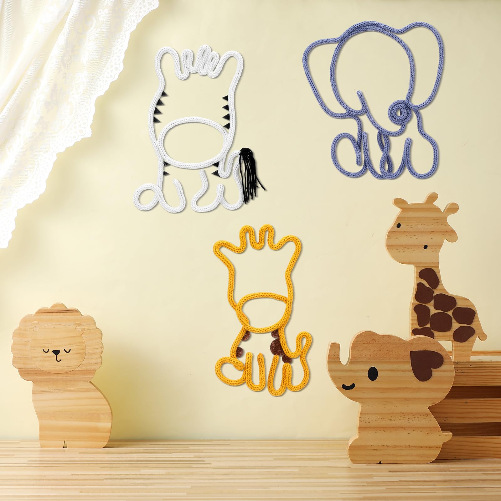 Charming Design and Versatile Decor: this set of 3 wildlife woven tassel ornaments adds a touch of natural charm to any space; Featuring adorable elephant, zebra, and giraffe designs, they are good for decorating rooms, dormitories, nurseries, or other spaces like bedrooms and living rooms
